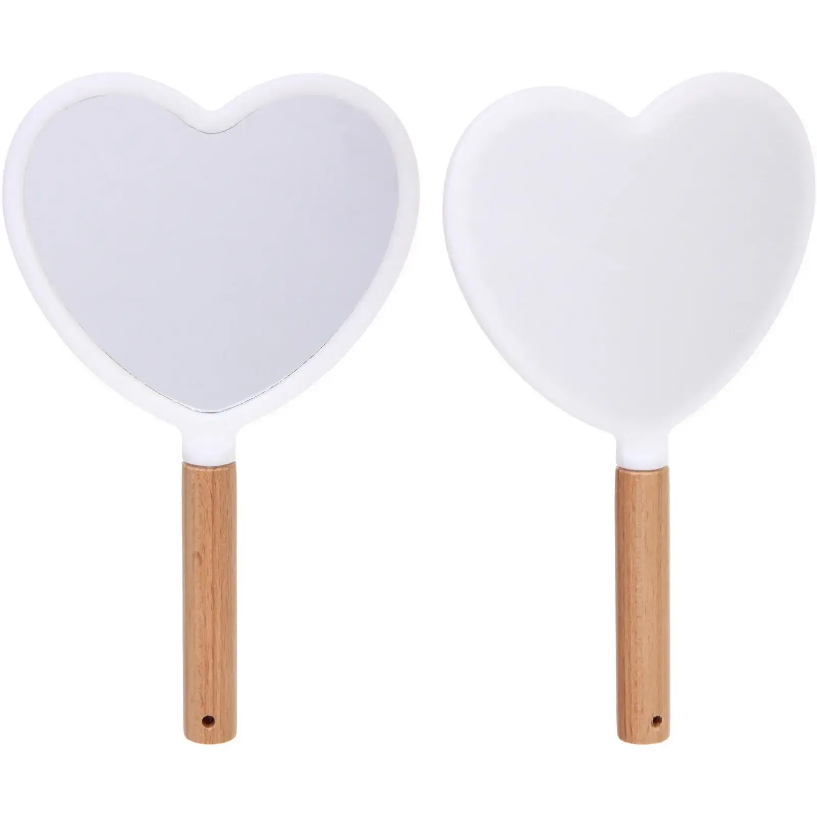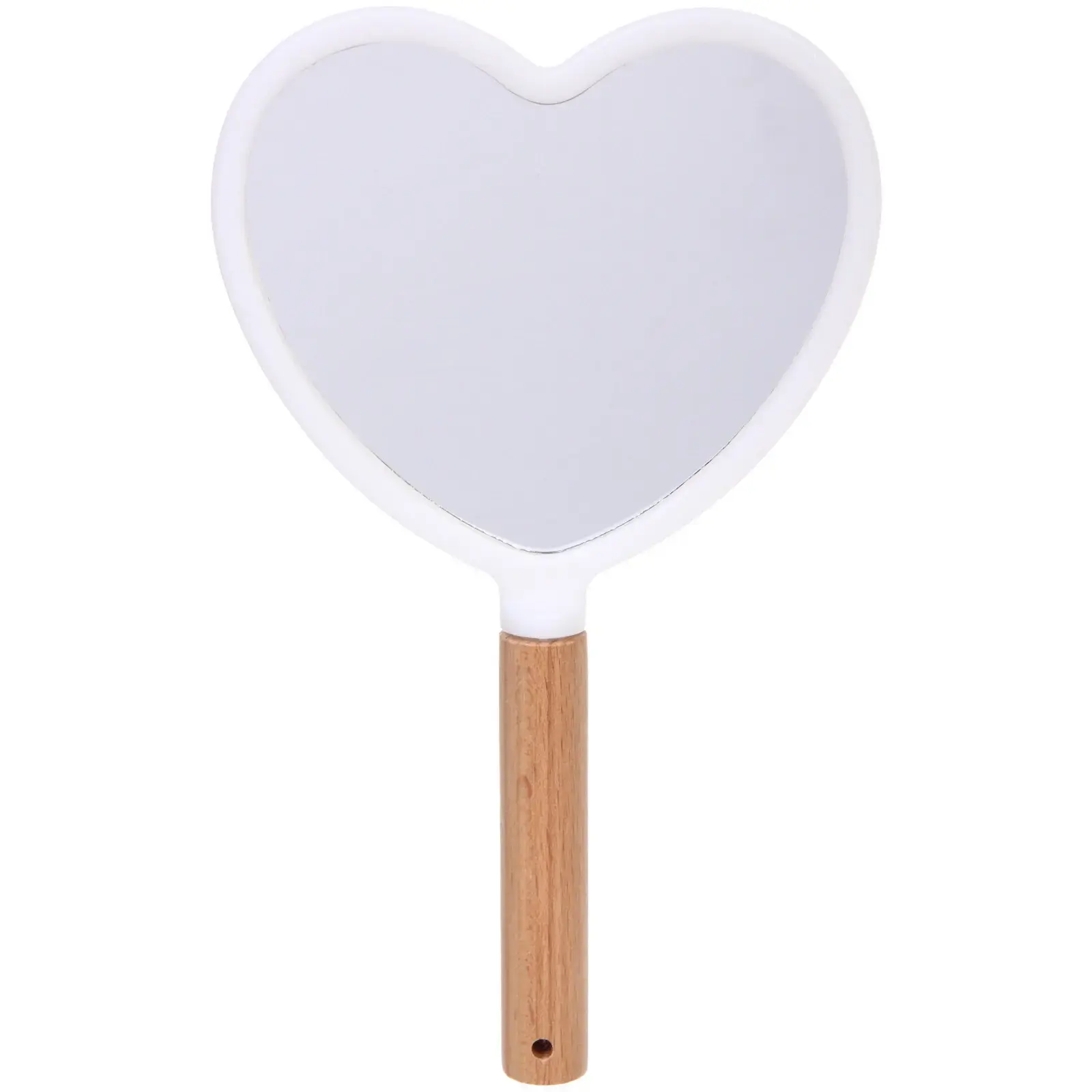 Преимущества этого зеркала заключаются не только в его привлекательном дизайне, но и в высококачественных материалах. Пластиковая рамка обеспечивает легкость и долговечность, а гладкая зеркальная поверхность гарантирует четкое отражение. Деревянная ручка добавляет натуральности и стиля, а отверстие для подвешивания позволяет удобно хранить зеркало.