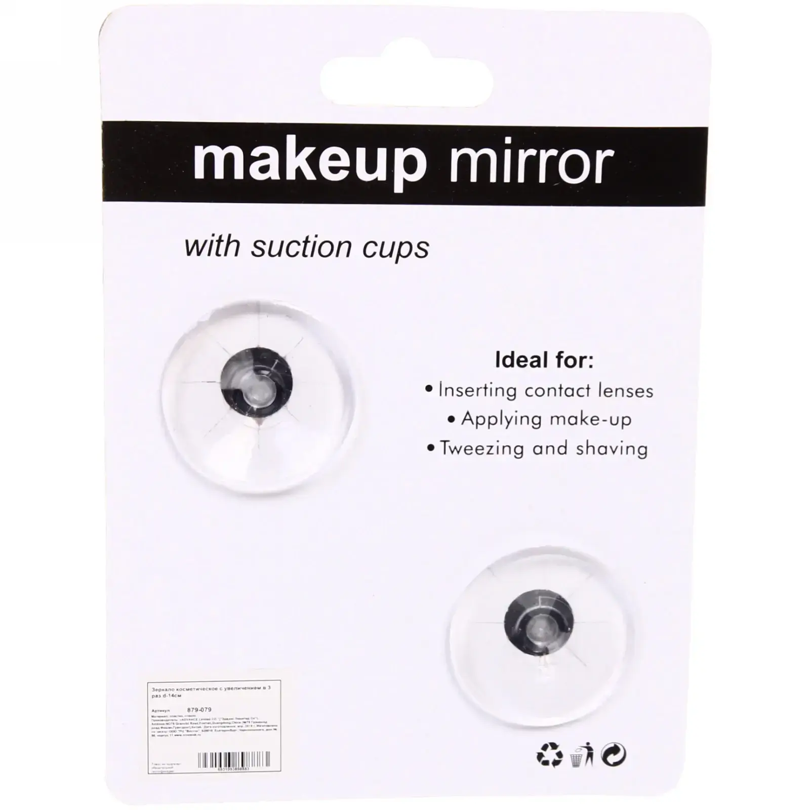 Легкий пластиковый корпус (вес менее 200 г) устойчив к влаге и косметическим средствам. Зеркало одинаково удобно для: