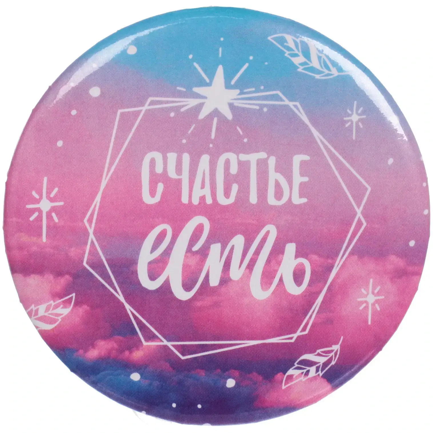 Зеркало косметическое 'Счастье есть', d-7,5см, металл/пластик, градиент голубой/розовый