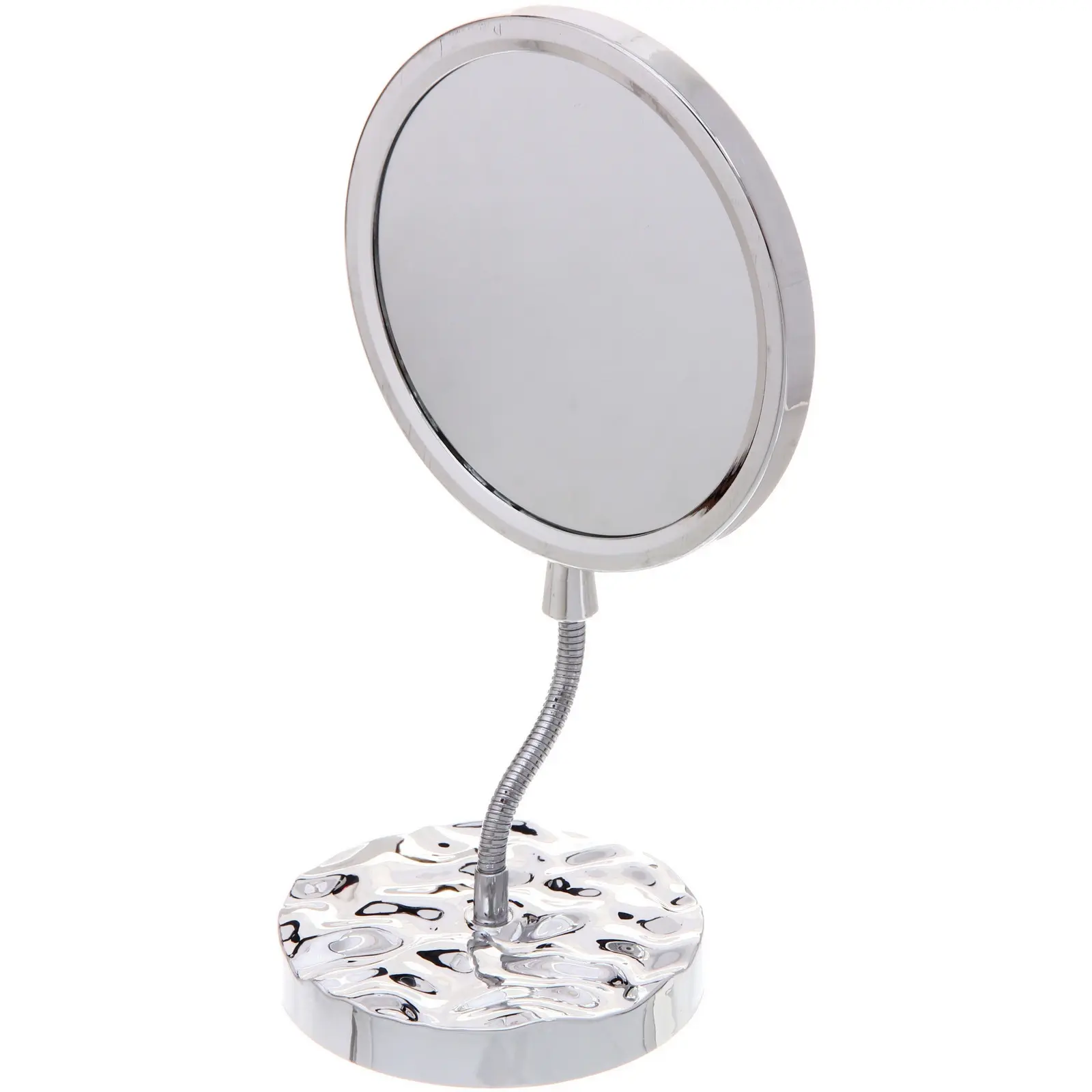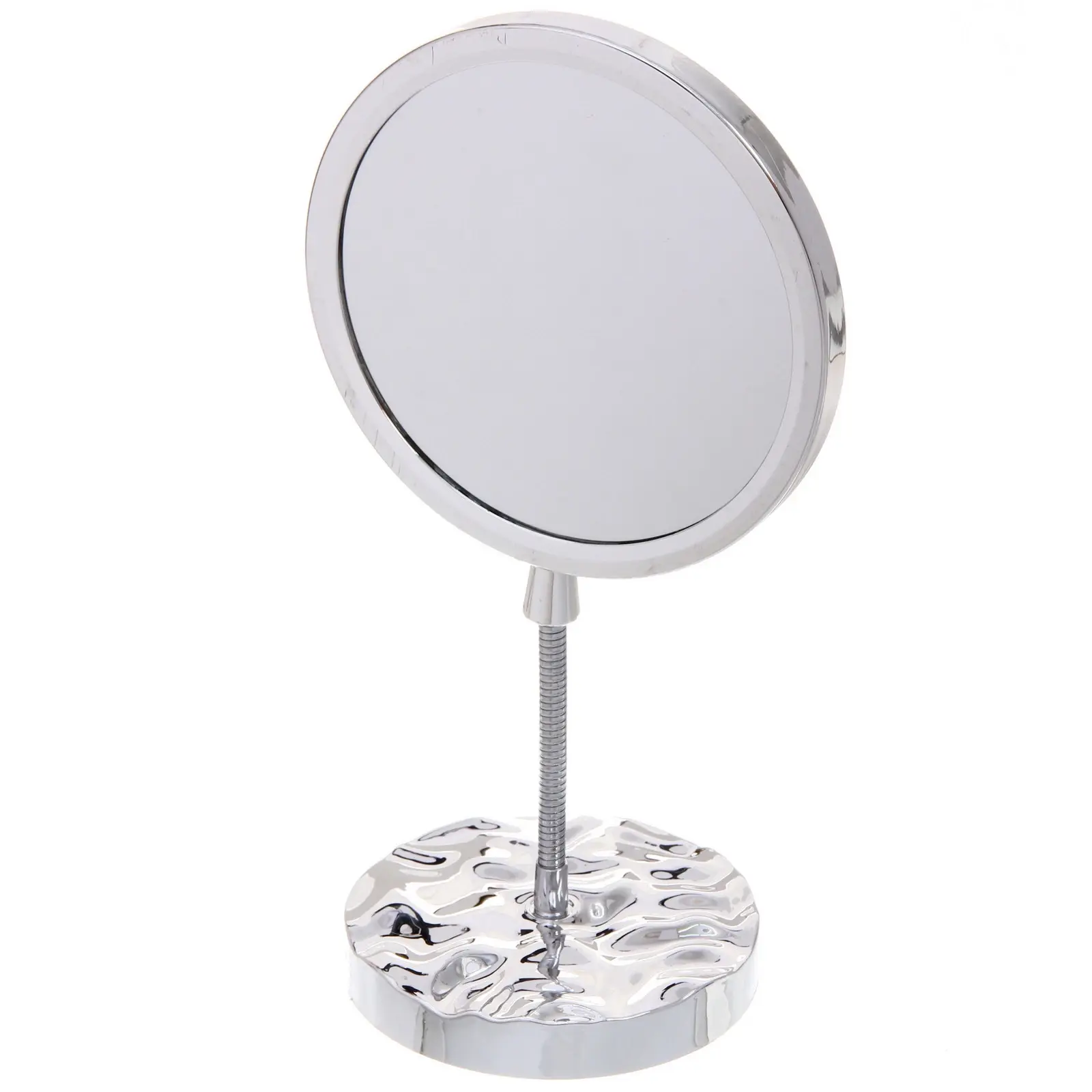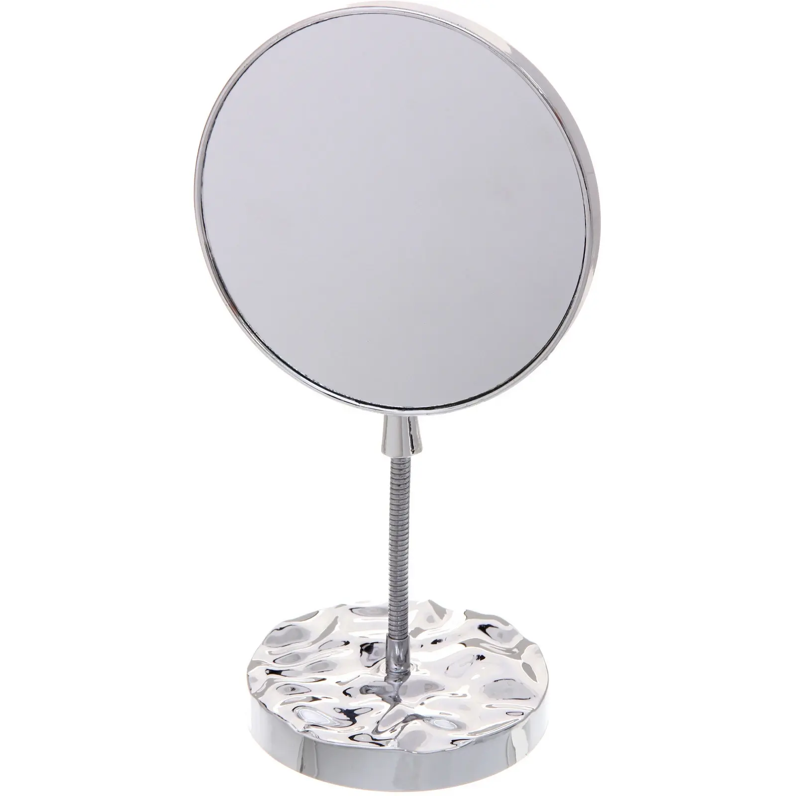 Это зеркало обладает классической круглой формой и ярким серебристым цветом, который легко впишется в любой интерьер комнаты или рабочего пространства. Главная выгода — компактные размеры 28.5x15 см позволяют разместить его на любом столе или тумбочке, а глянцевая металлическая рама обеспечивает долговечность и эстетичный внешний вид.