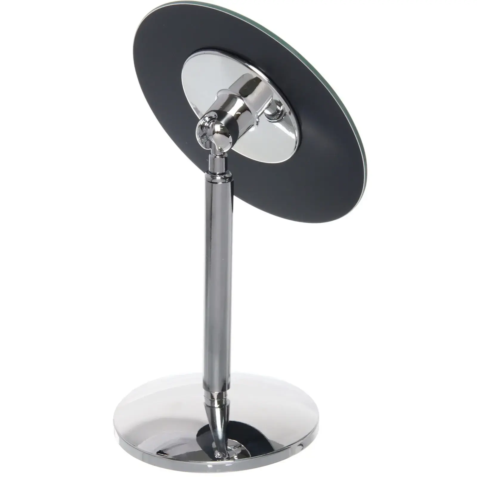 Зеркало имеет регулируемую подставку, что позволяет изменять угол наклона для максимального комфорта. Оно идеально подходит для использования на столе, туалетном столике или в ванной комнате. Благодаря своим компактным размерам (23х13,5 см) зеркало легко помещается на любой поверхности, не занимая много места.
