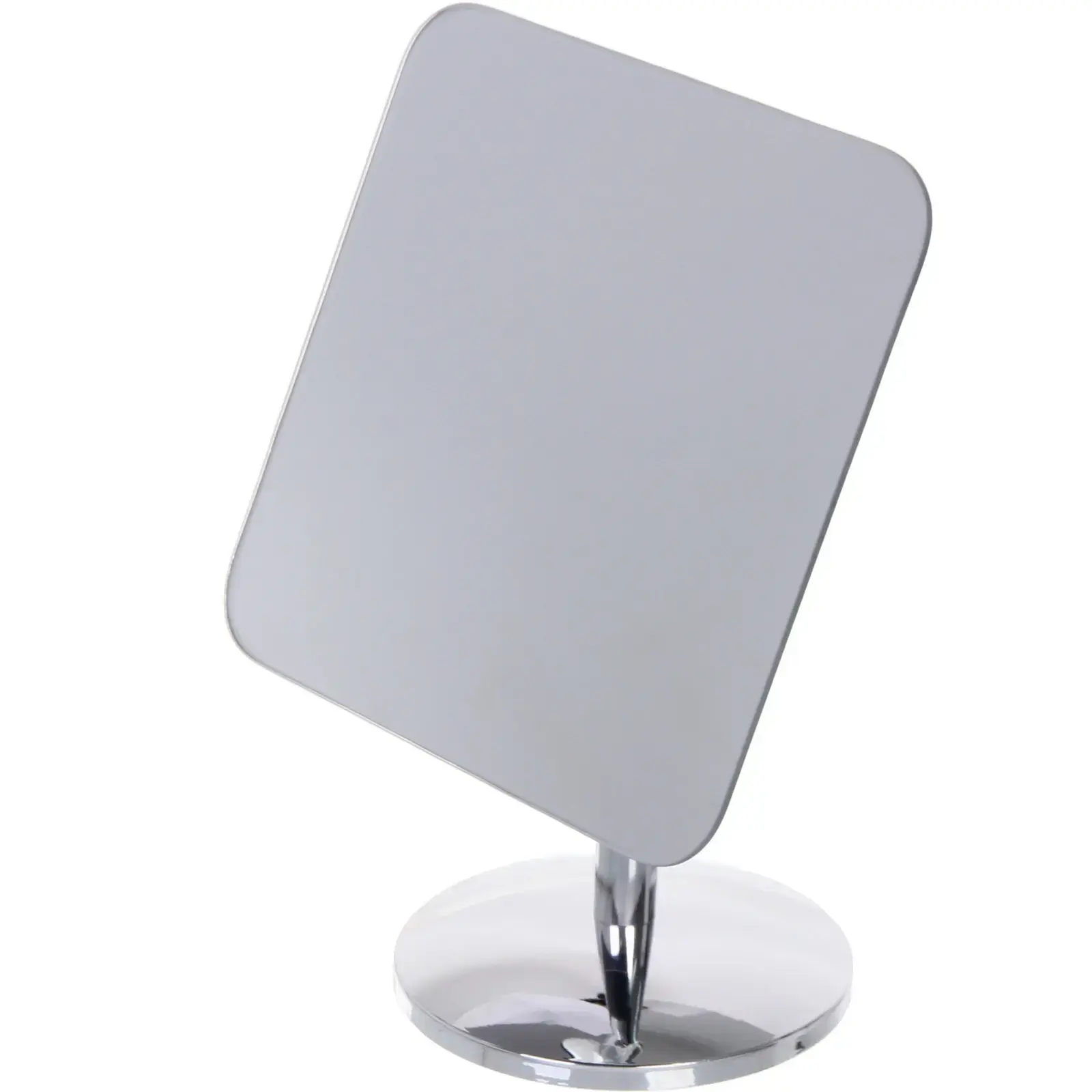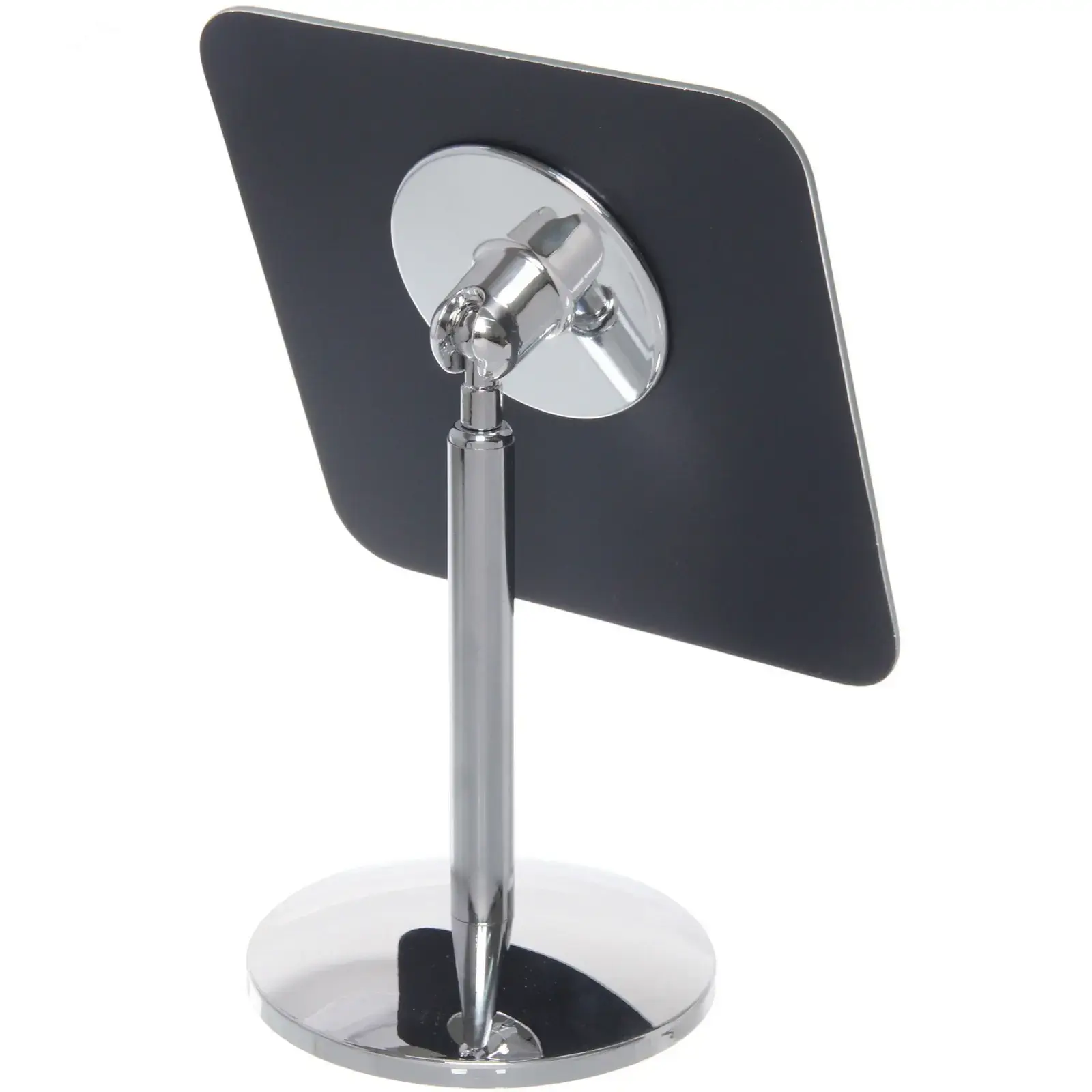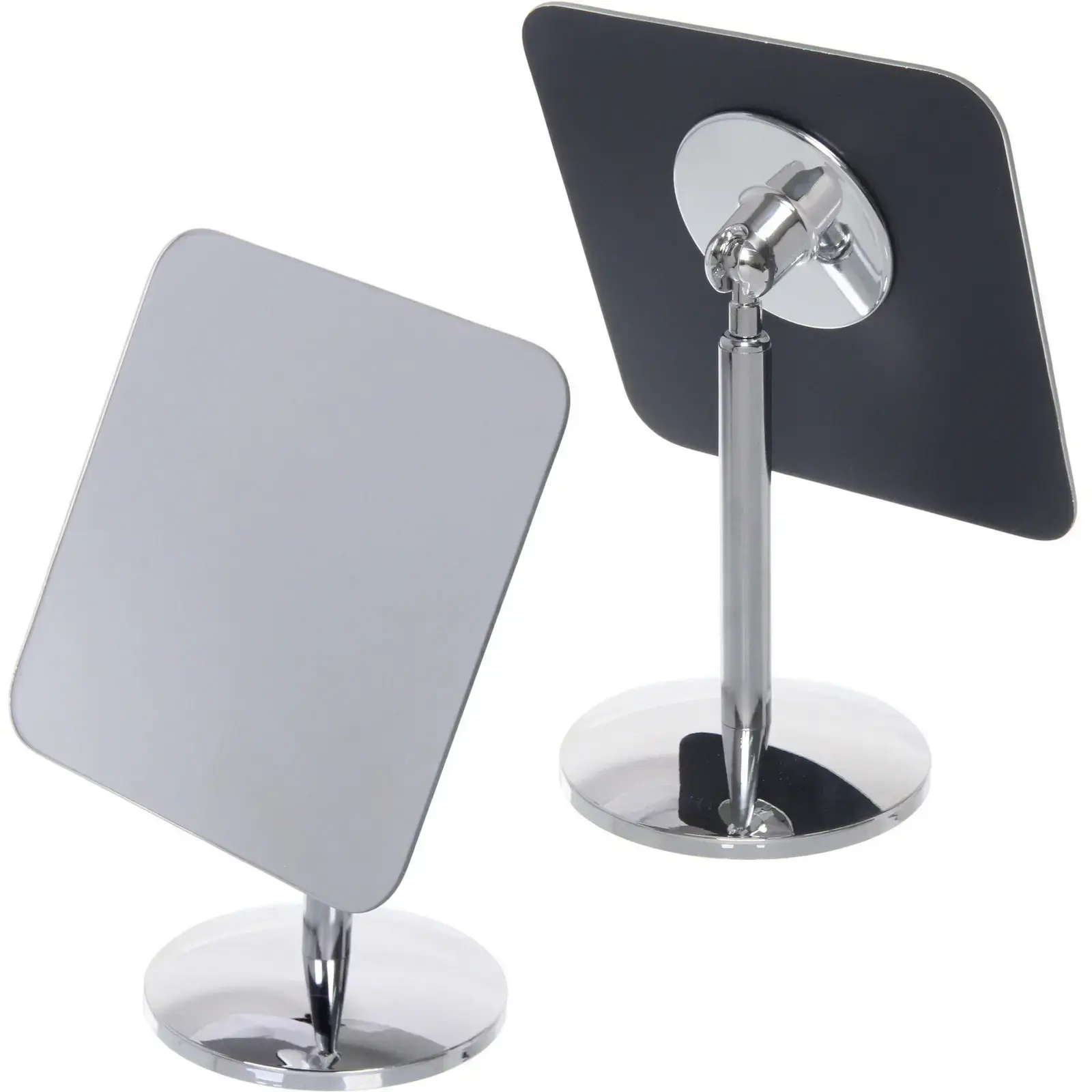 Зеркало имеет квадратную форму с закругленными углами и выполнено из высококачественного стекла, что обеспечивает четкое и яркое отражение. Металлическая подставка с хромированным покрытием придает зеркалу современный вид и надежность. Угол наклона зеркала можно регулировать, что позволяет настроить его под любые ваши потребности. Это делает его идеальным выбором для использования как в ванной комнате, так и на туалетном столике.