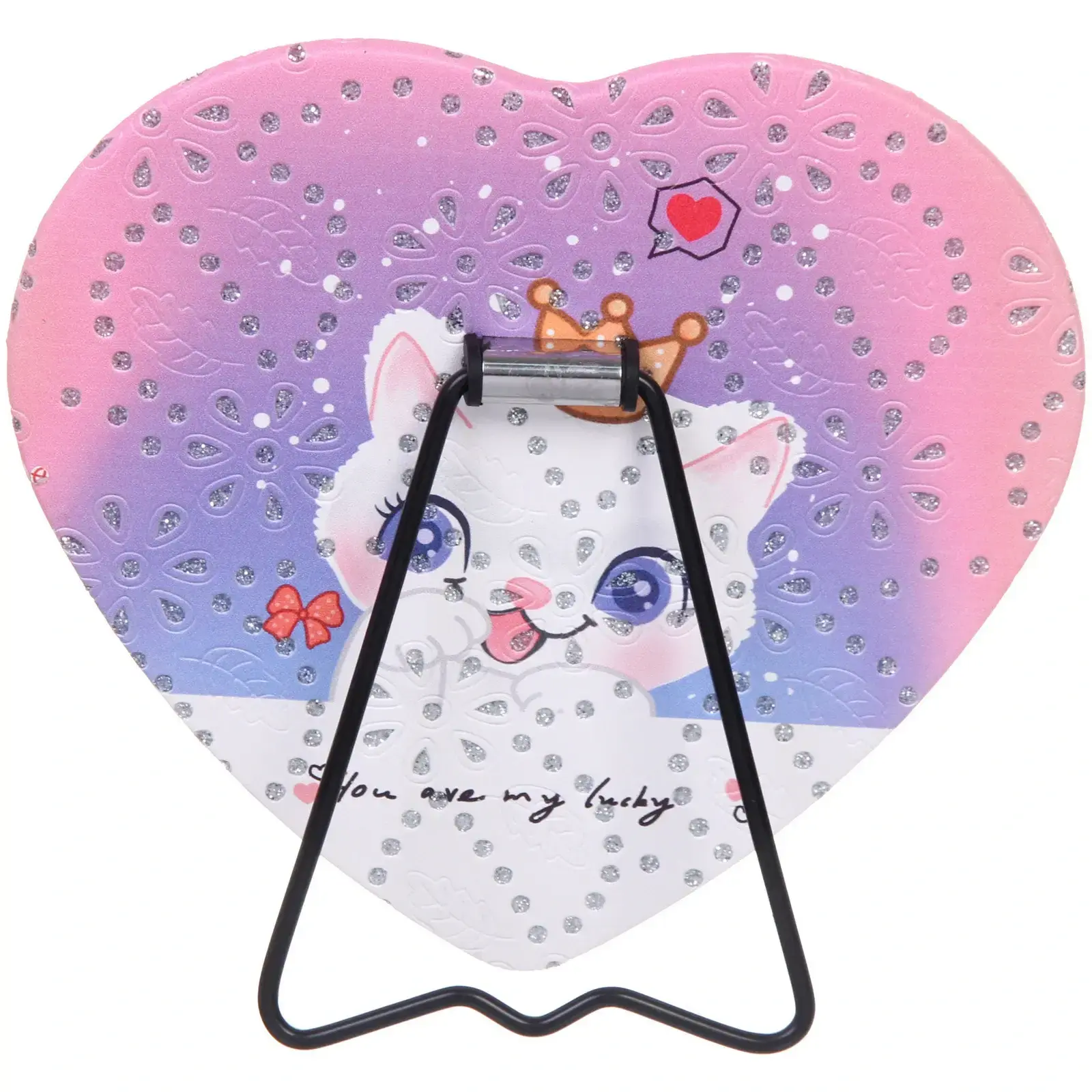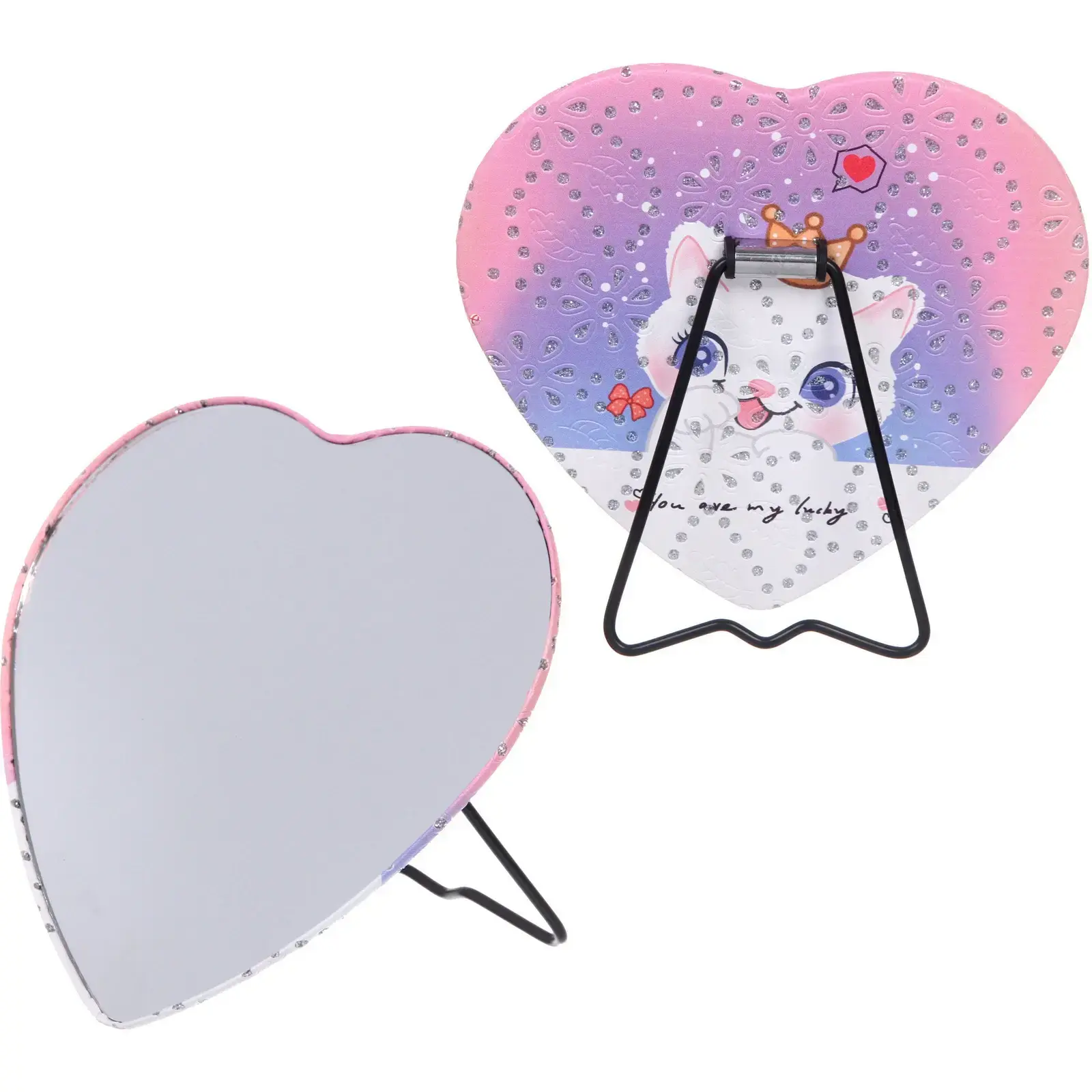 Это зеркало не только функционально, но и станет стильным элементом вашего интерьера. С его помощью вы сможете легко и удобно делать макияж, укладку или просто следить за своим внешним видом. Декоративный дизайн с изображением милого котенка и блестящими элементами добавляет нотку игривости и уюта в ваш дом.