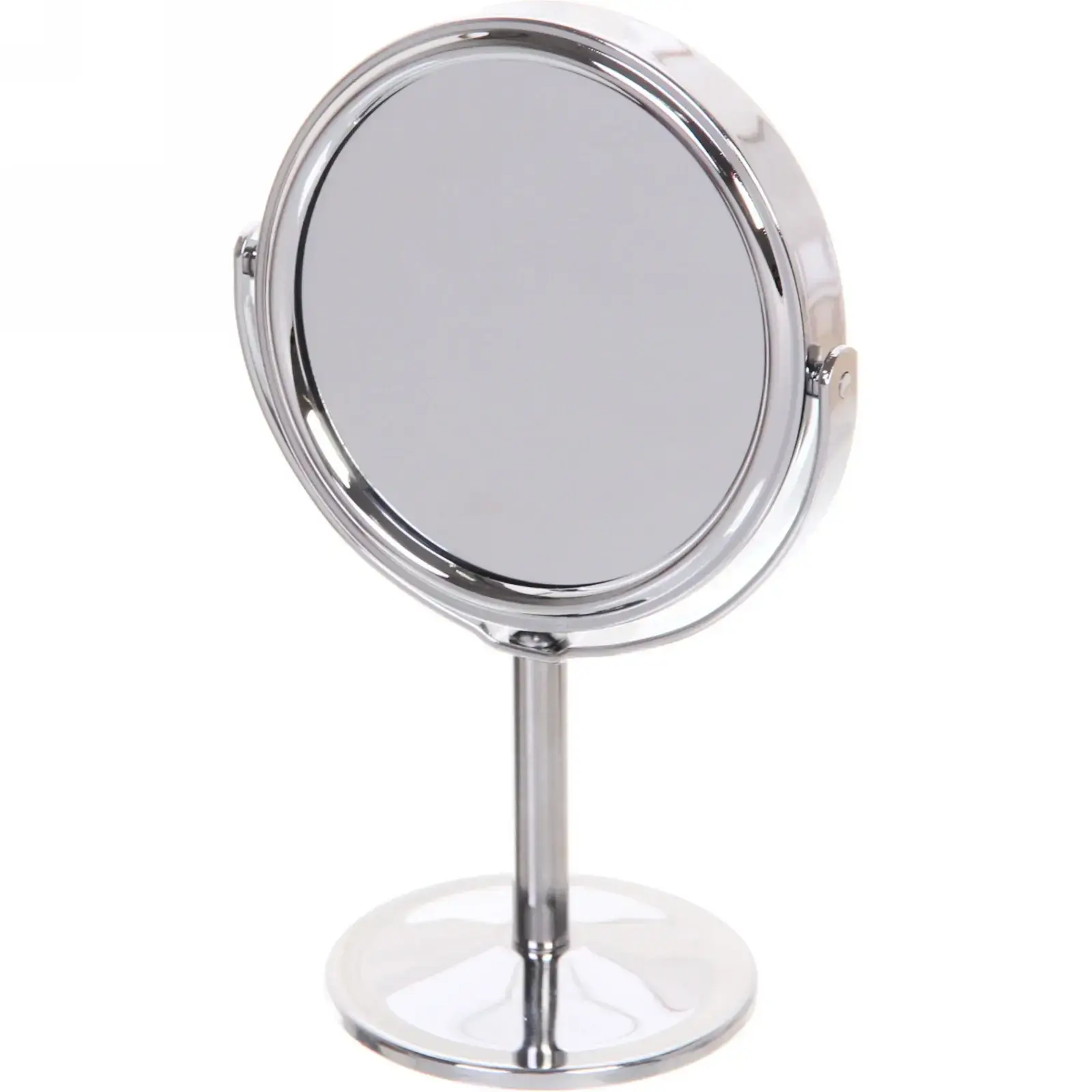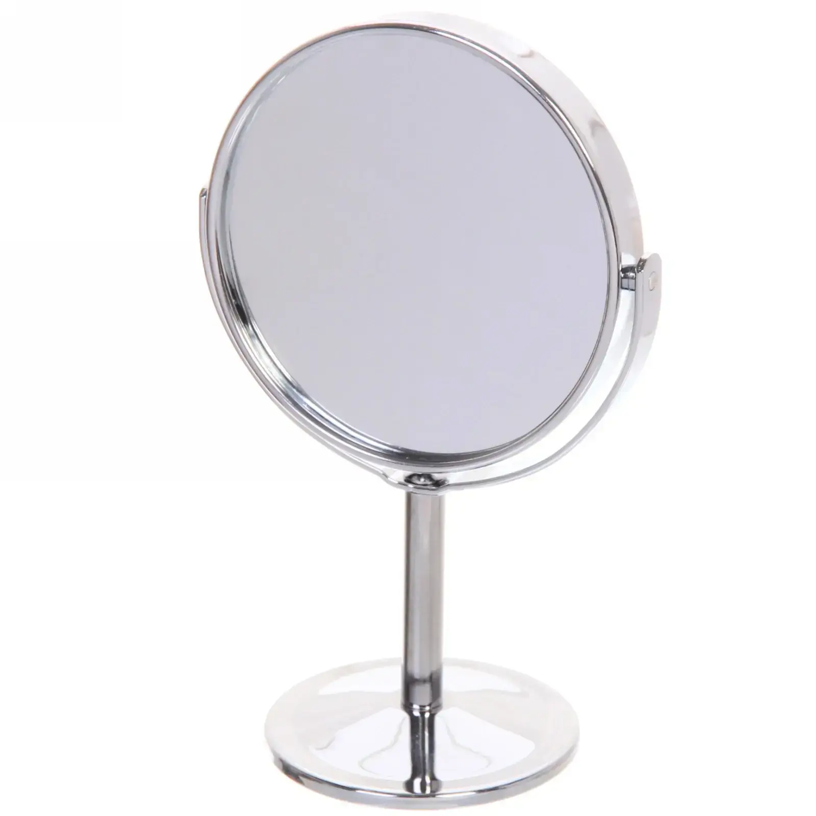Зеркало имеет двухстороннюю конструкцию, что позволяет вам выбирать между обычным и увеличительным отражением. Оно удобно размещается на столе или туалетном столике благодаря устойчивой ножке. Круглая форма и стильный хромированный ободок придают зеркалу современный вид, который отлично впишется в любой интерьер.