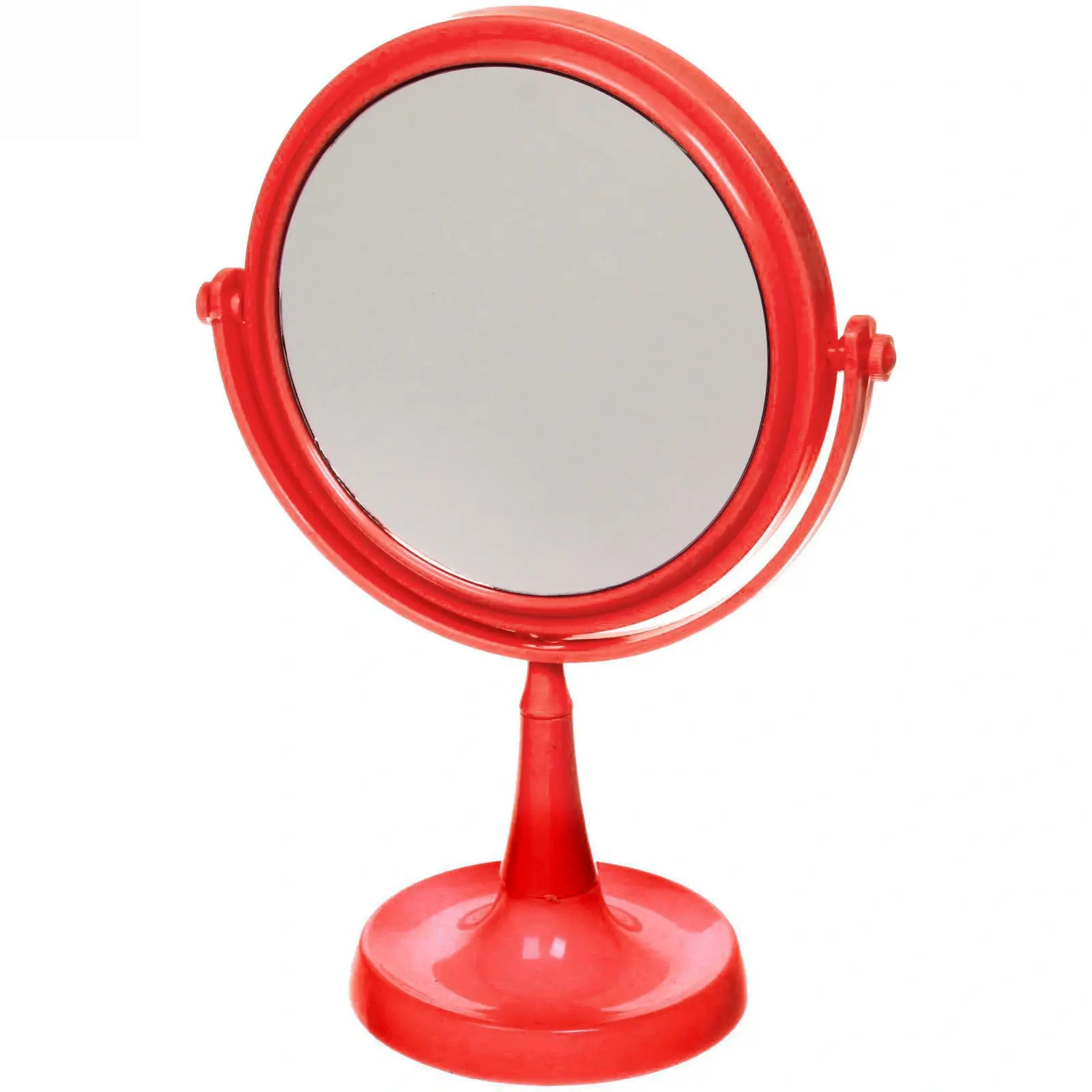 Размер зеркала составляет 25,5 см в высоту и 15 см в диаметре, что делает его удобным для повседневного использования. Оно выполнено из качественных материалов: пластика и стекла, что обеспечивает легкость и устойчивость конструкции. Зеркало станет отличным подарком для себя или близких, добавив яркие акценты в повседневные ритуалы красоты.
