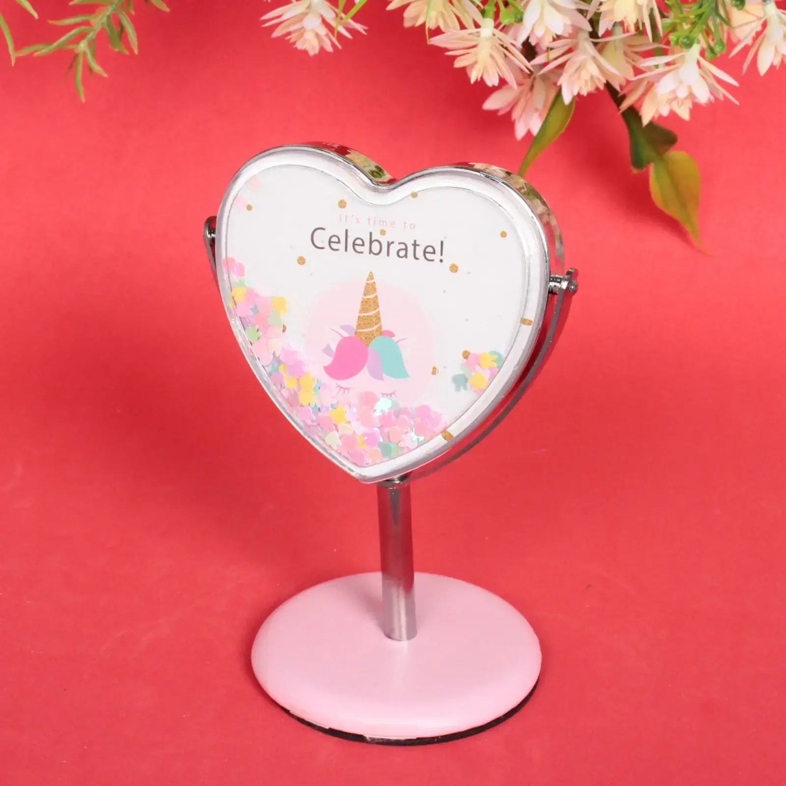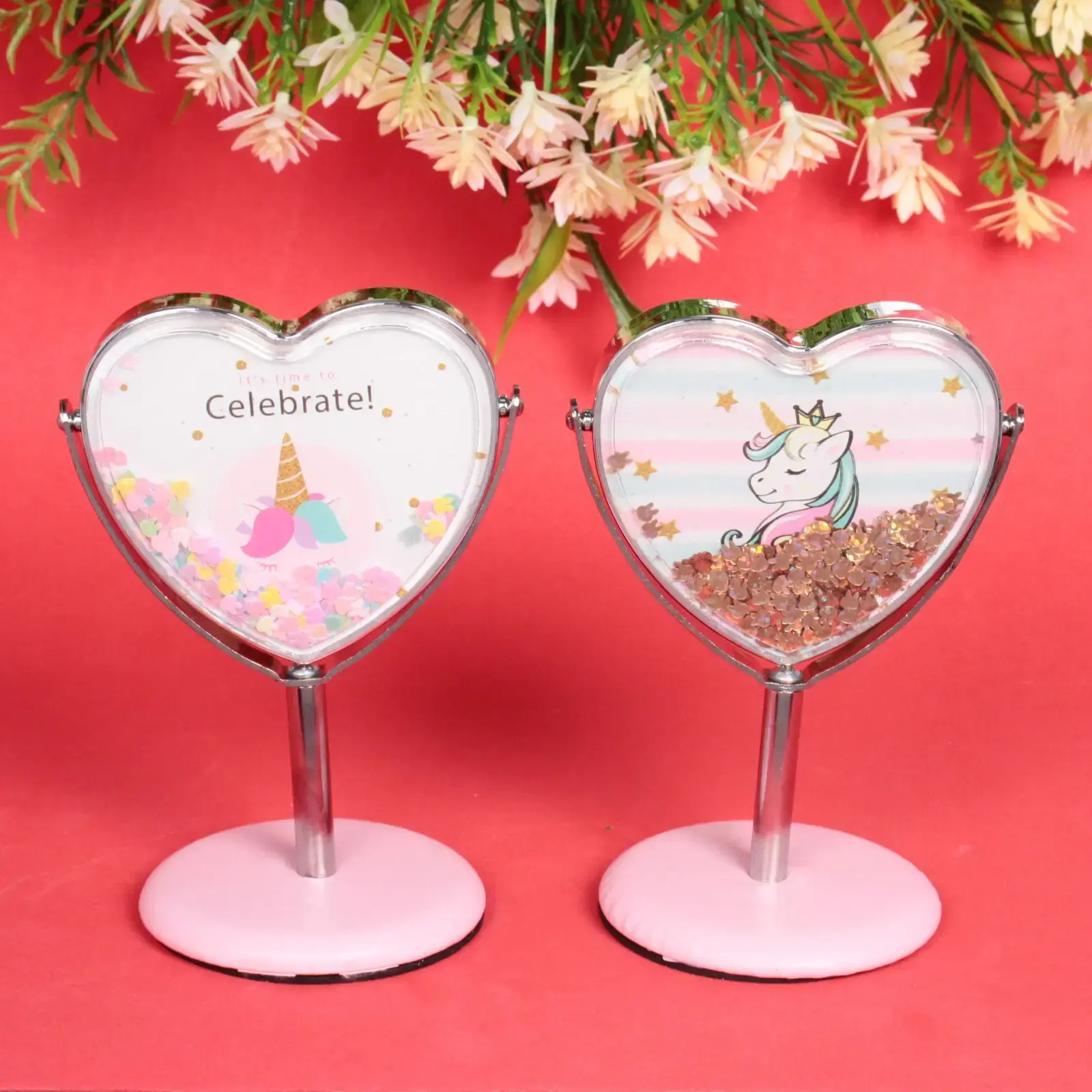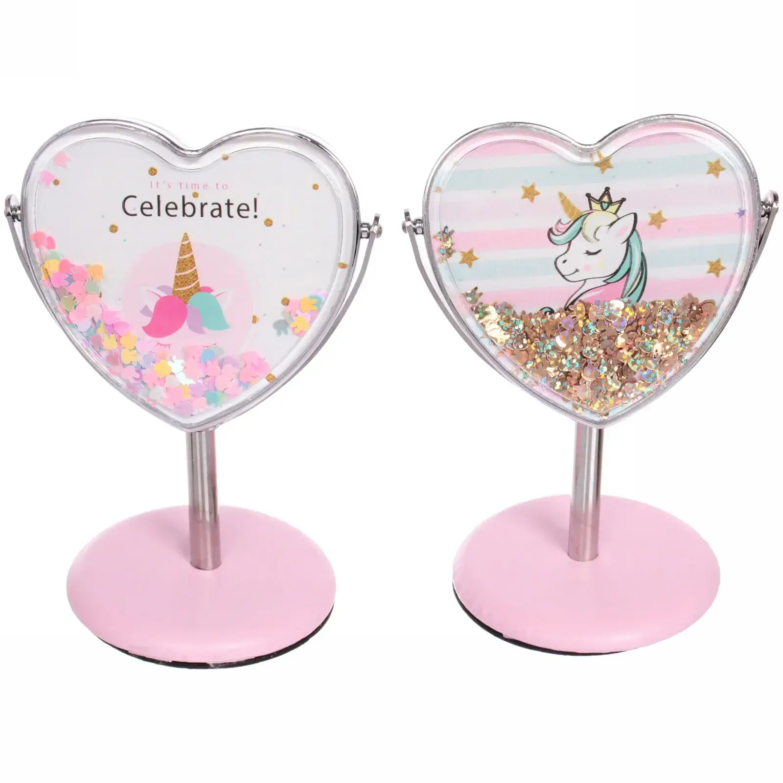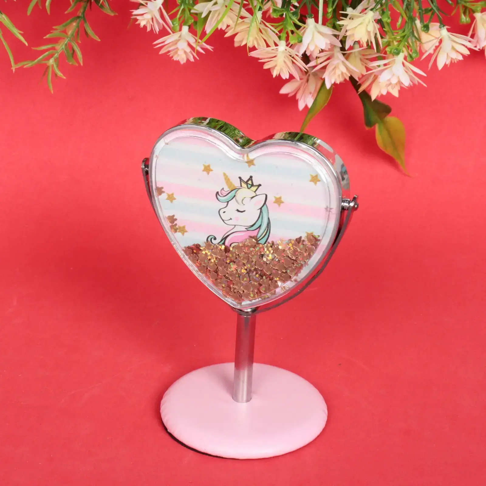 Настольное зеркало в форме сердца станет изюминкой вашего интерьера или оригинальным подарком для близких. Элегантная конструкция с блестящими элементами и изображением единорога создает настроение праздника даже в будние дни.