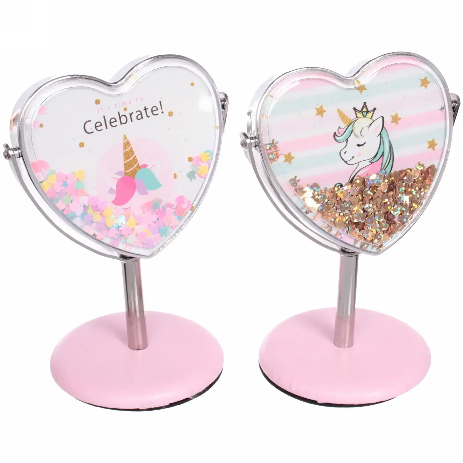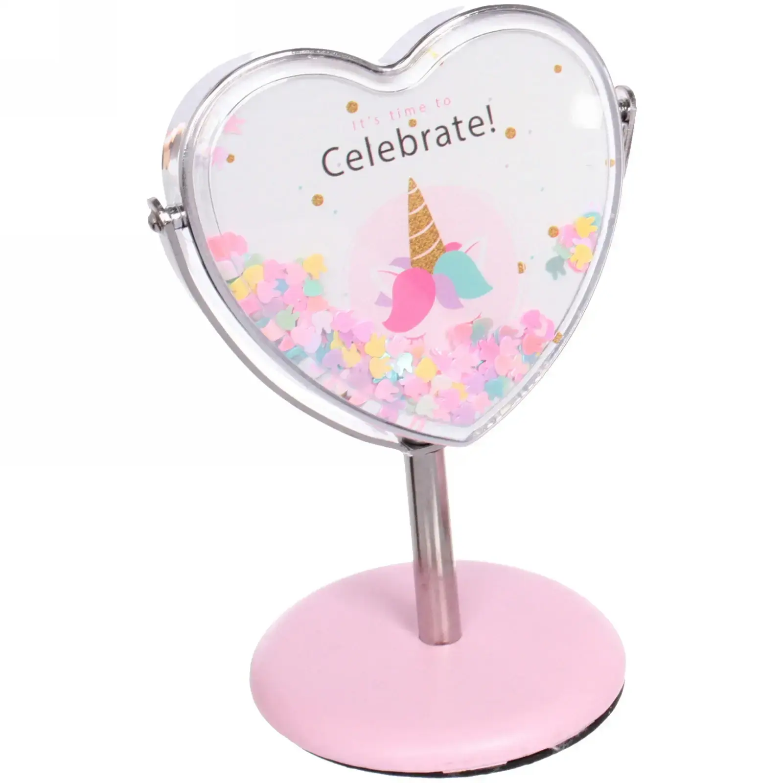 Зеркало настольное «Stylish image - Единорожек Оливер», сердце, 8х14 см, металл и стекло, розовая/голубая подставка
