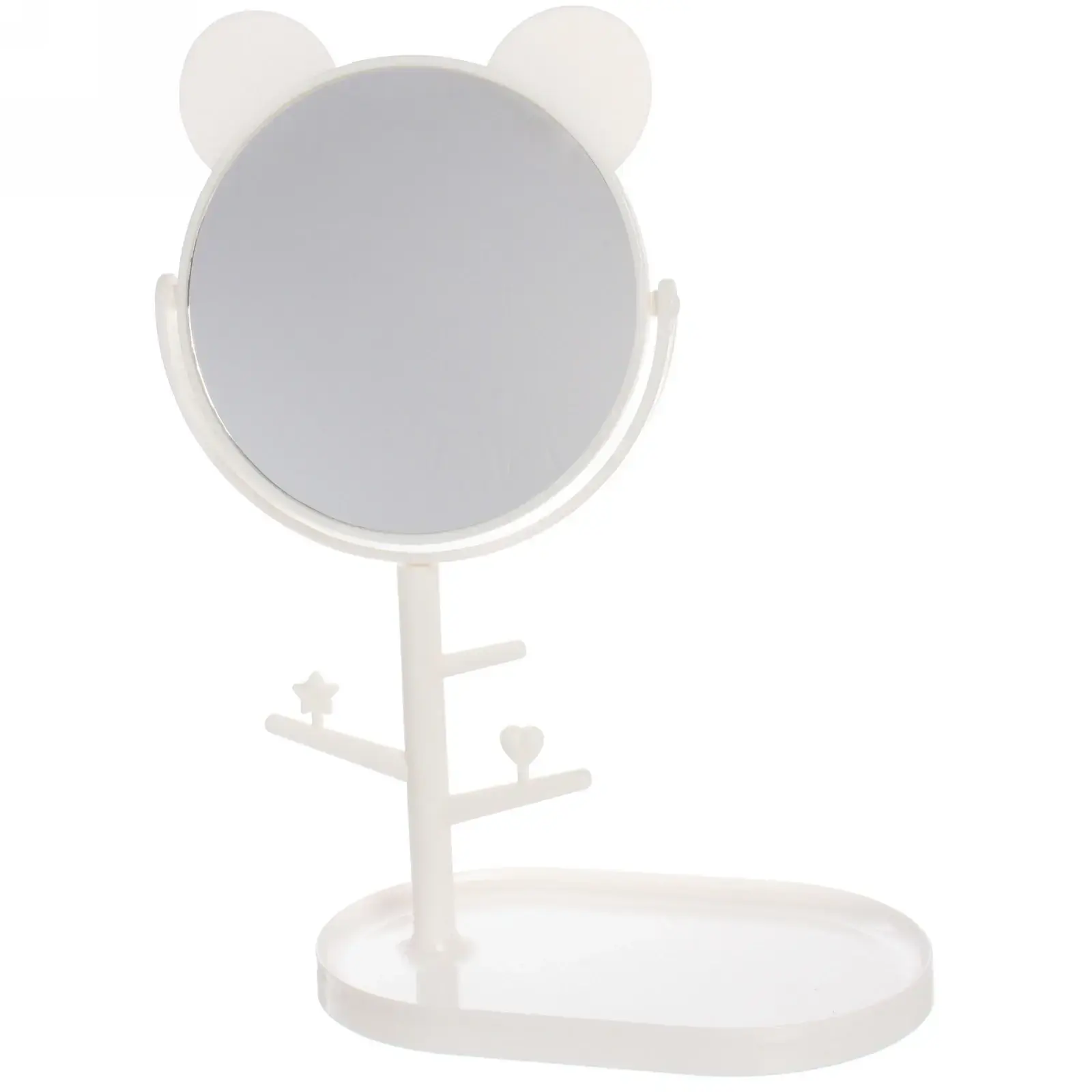 Круглая форма диаметром 15 см обеспечивает оптимальный обзор, а высота 32 см идеально подходит для работы сидя. Сочетание ударопрочного стекла и легкого пластика делает конструкцию долговечной, но не утяжеляет ее. Дизайн с милыми «ушками» и декоративными элементами гармонично впишется в интерьер спальни, ванной комнаты или детской.