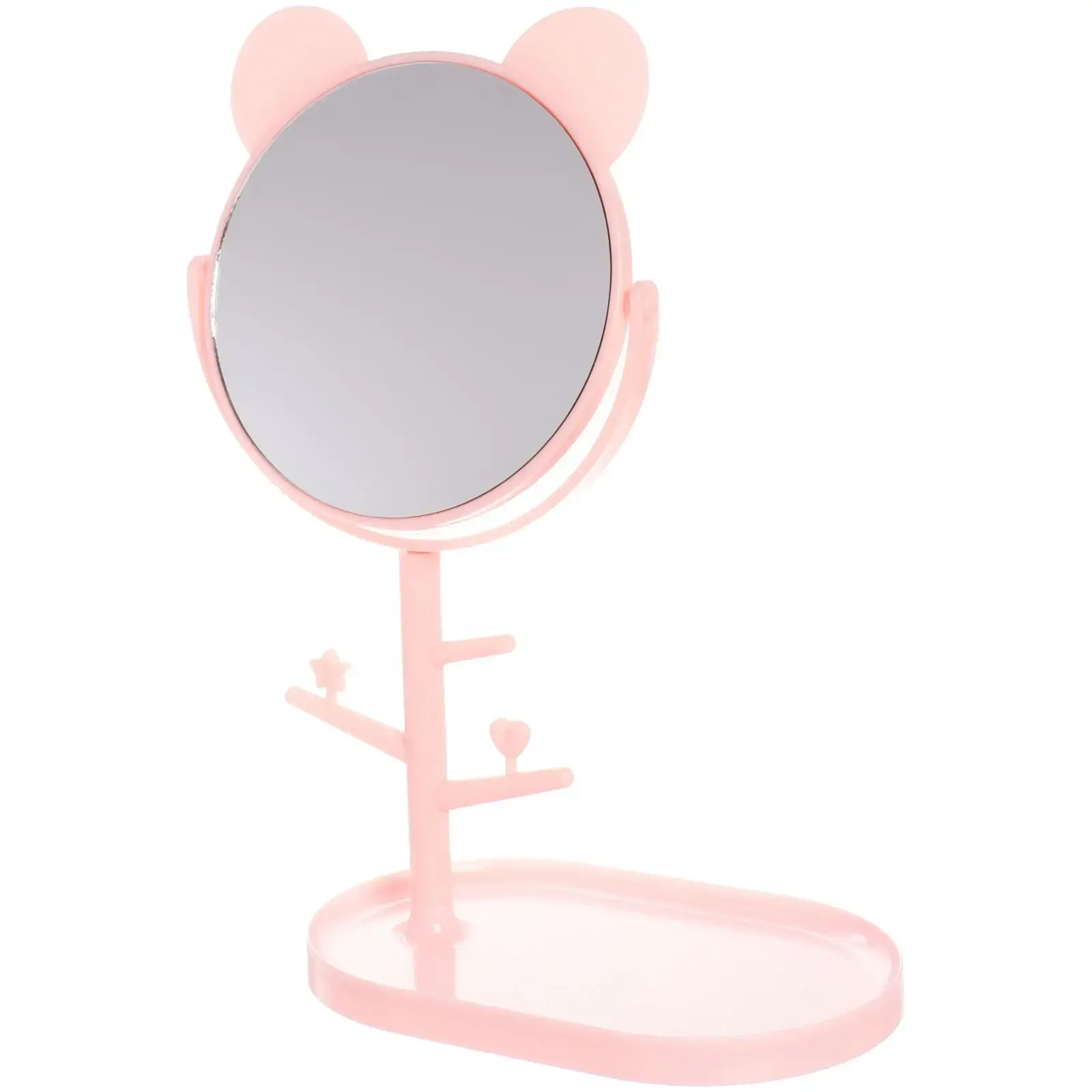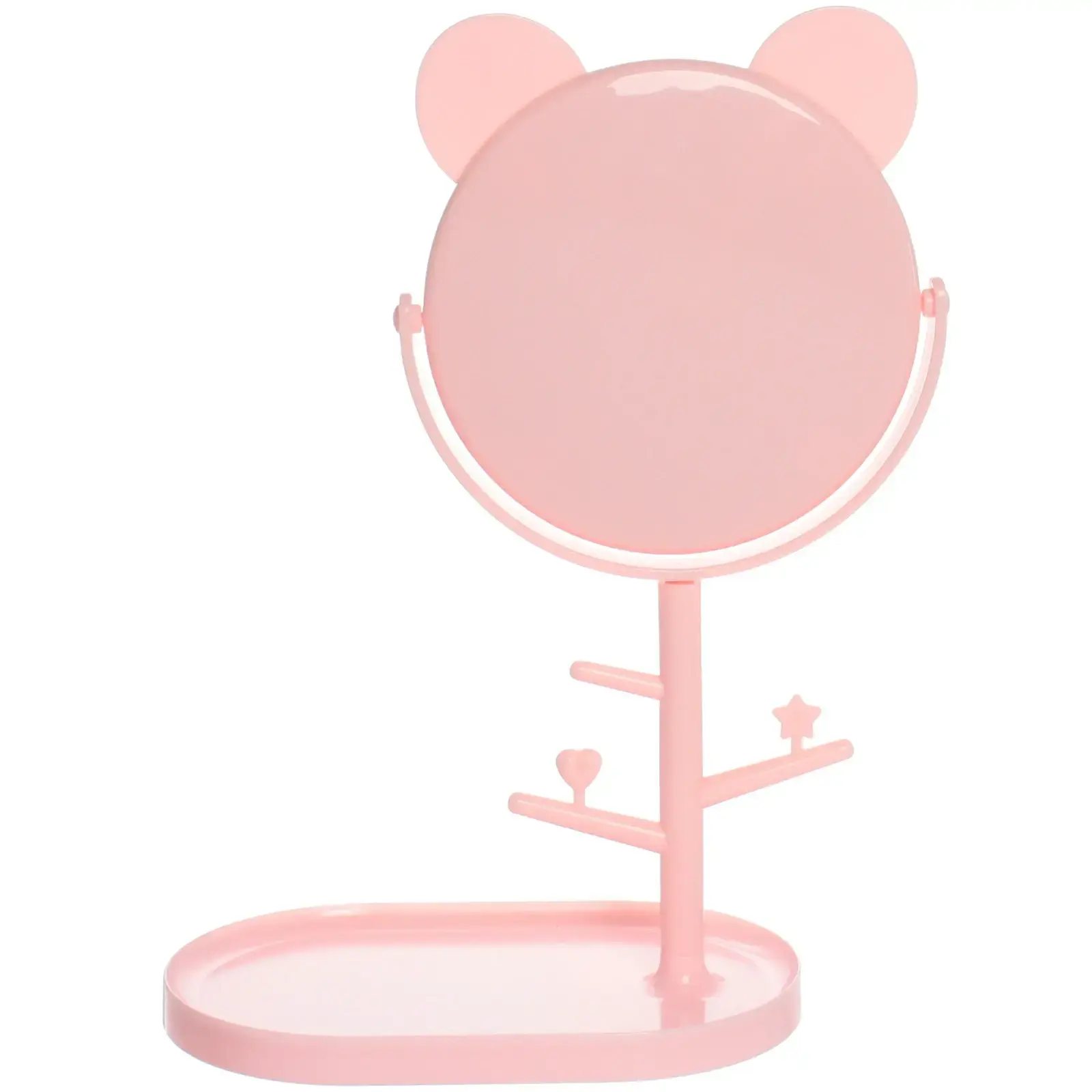 Зеркало выполнено из качественных материалов: пластика и стекла, что обеспечивает его долговечность и надежность. Овальная подставка и декоративные элементы в виде сердечка и звезды добавляют оригинальности и игривости. Это зеркало станет не только функциональным предметом, но и стильным элементом декора вашего дома.