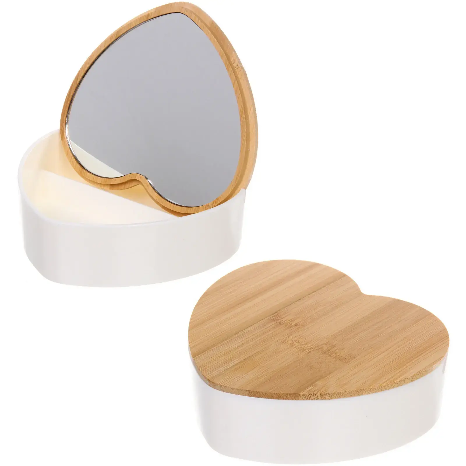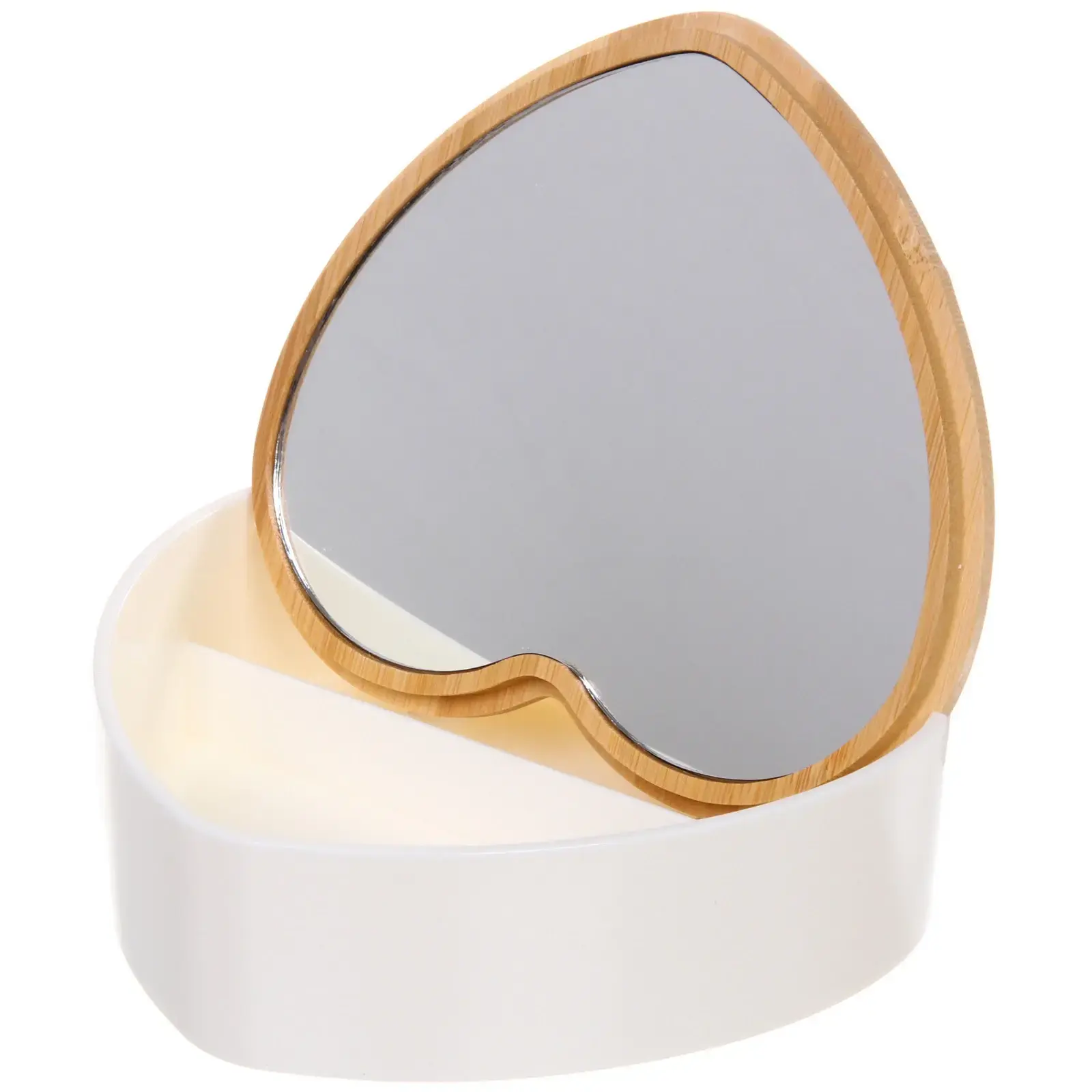 Выбирая зеркало «БРАМИНГЕМ», вы получаете не только красивый предмет интерьера, но и функциональный органайзер. Бамбуковая крышка придает изделию натуральный вид, а белый корпус легко впишется в любой интерьер. Компактные размеры 16х14,5х5 см позволяют разместить его даже на небольшом столе, а округлая форма добавляет изящества.