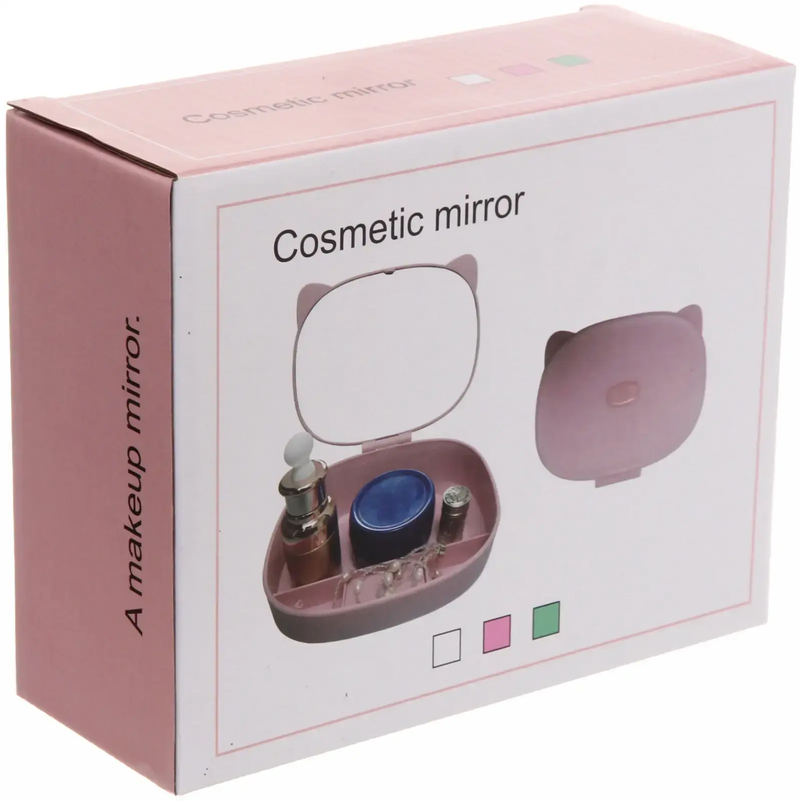 Представляем зеркало-органайзер 'Beauty - Cat', идеальное решение для хранения косметики. Его компактный размер (17*13*6,5см) и привлекательный дизайн с кошачьими ушками станут украшением любой туалетного столика.