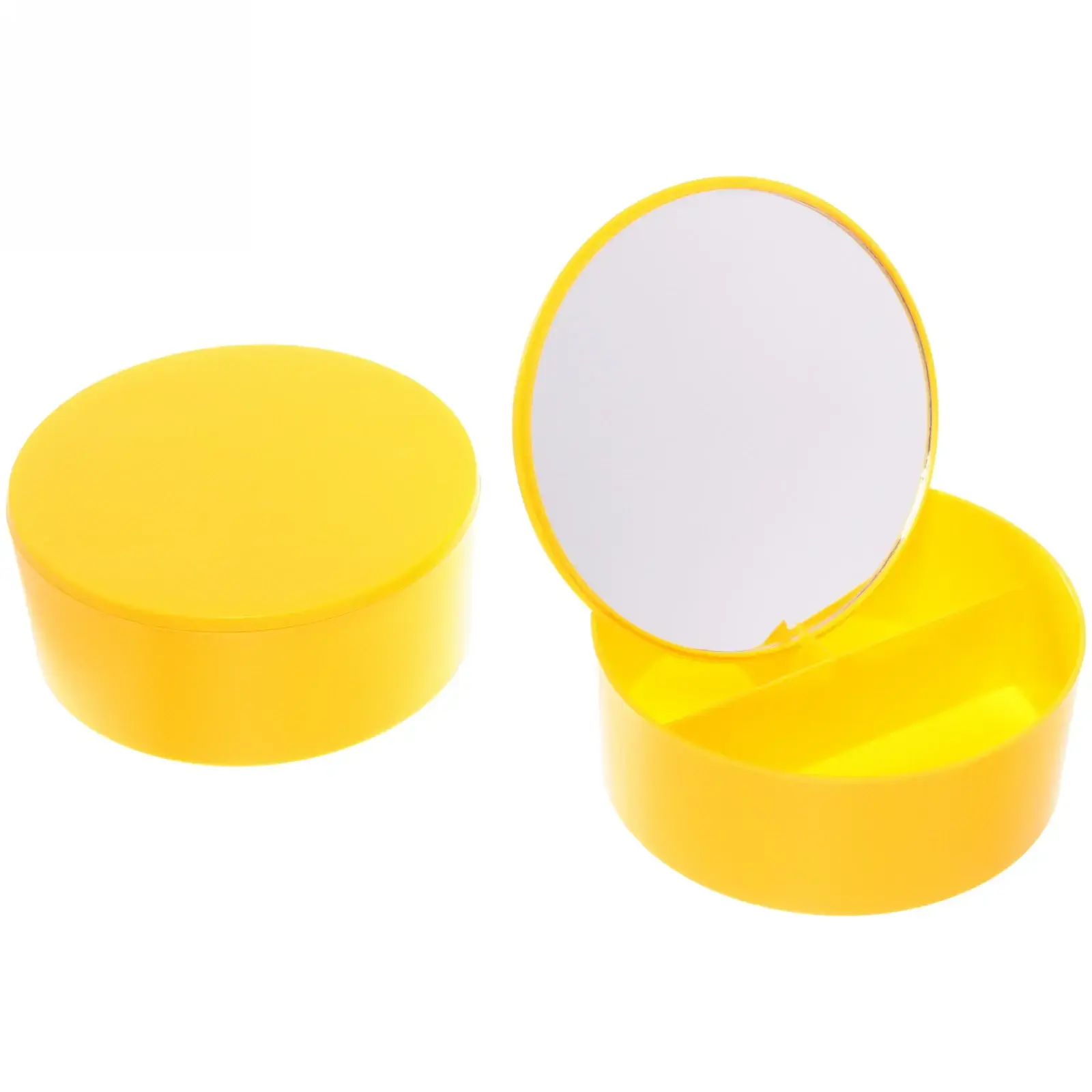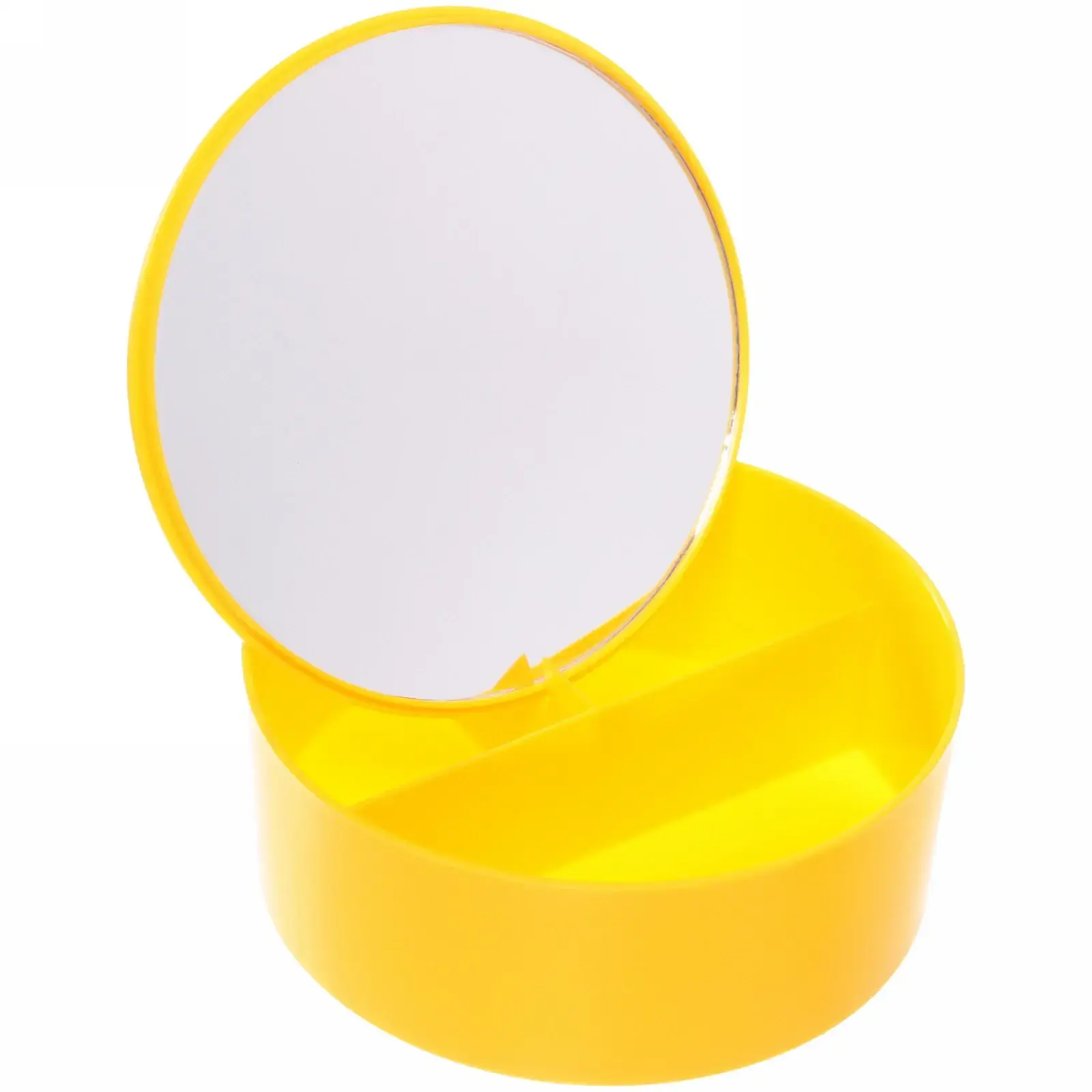 Яркий желтый цвет добавит позитива вашему туалетному столику, а продуманная конструкция экономит пространство. Легкий пластиковый корпус устойчив к царапинам, а стеклянное зеркало гарантирует точное отражение без искажений.