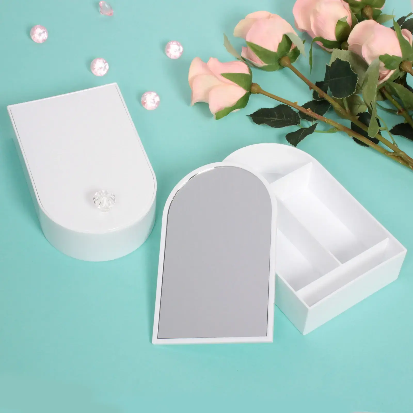 Компактное решение для хранения колец, серёг и браслетов, которое дополнит ваш туалетный столик. Встроенное зеркало с защитным покрытием обеспечивает чёткое отражение, а продуманные отделения защищают ценные аксессуары от потери.