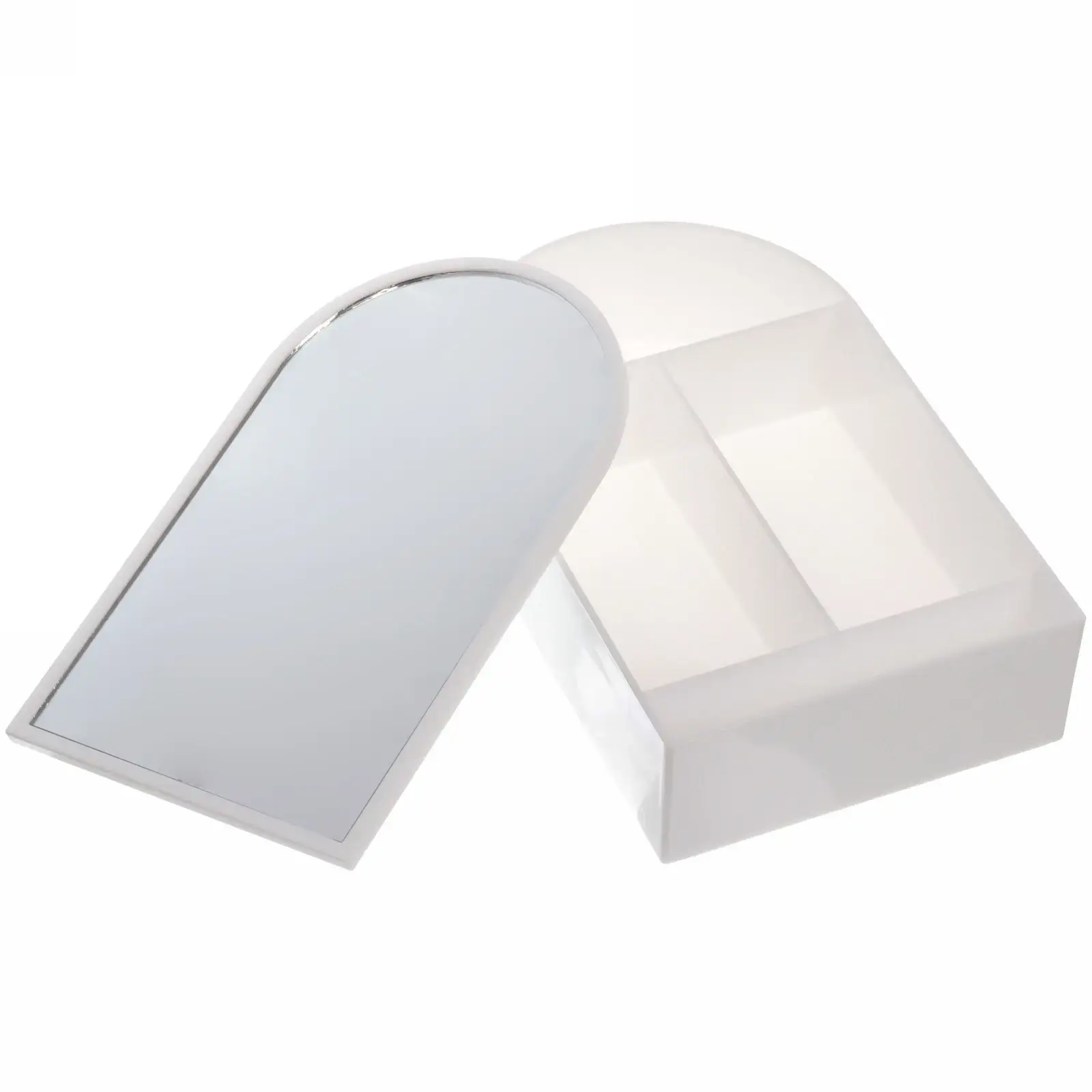 - 2 функциональных зоны: зеркальная крышка и 3 секции для хранения