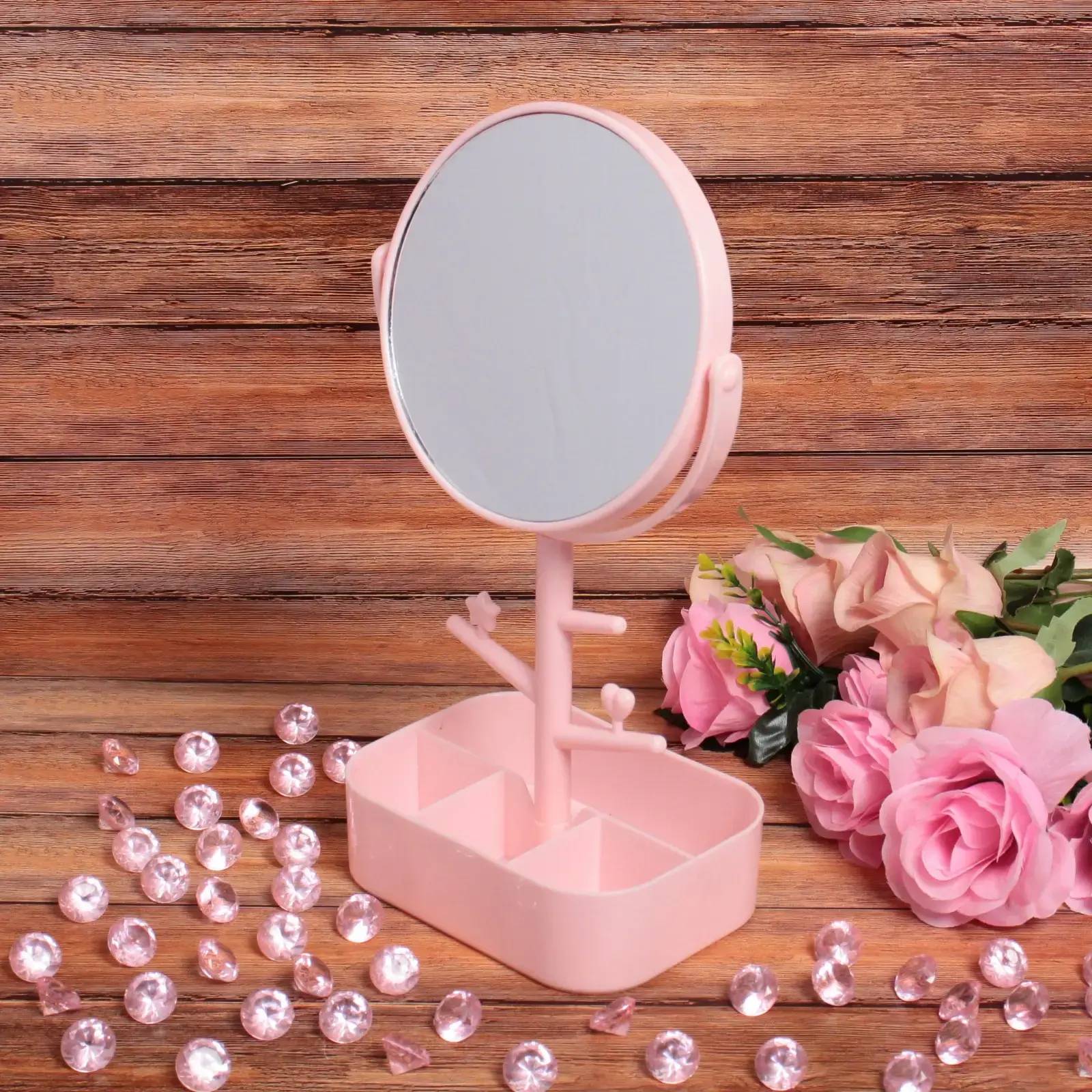 Это зеркало идеально подходит для использования на туалетном столике или в ванной. Благодаря встроенному органайзеру, вы сможете хранить свои любимые косметические средства и аксессуары под рукой. Его стильный и яркий дизайн в розовом цвете добавит изюминку в любой интерьер, а также станет отличным подарком для близких.