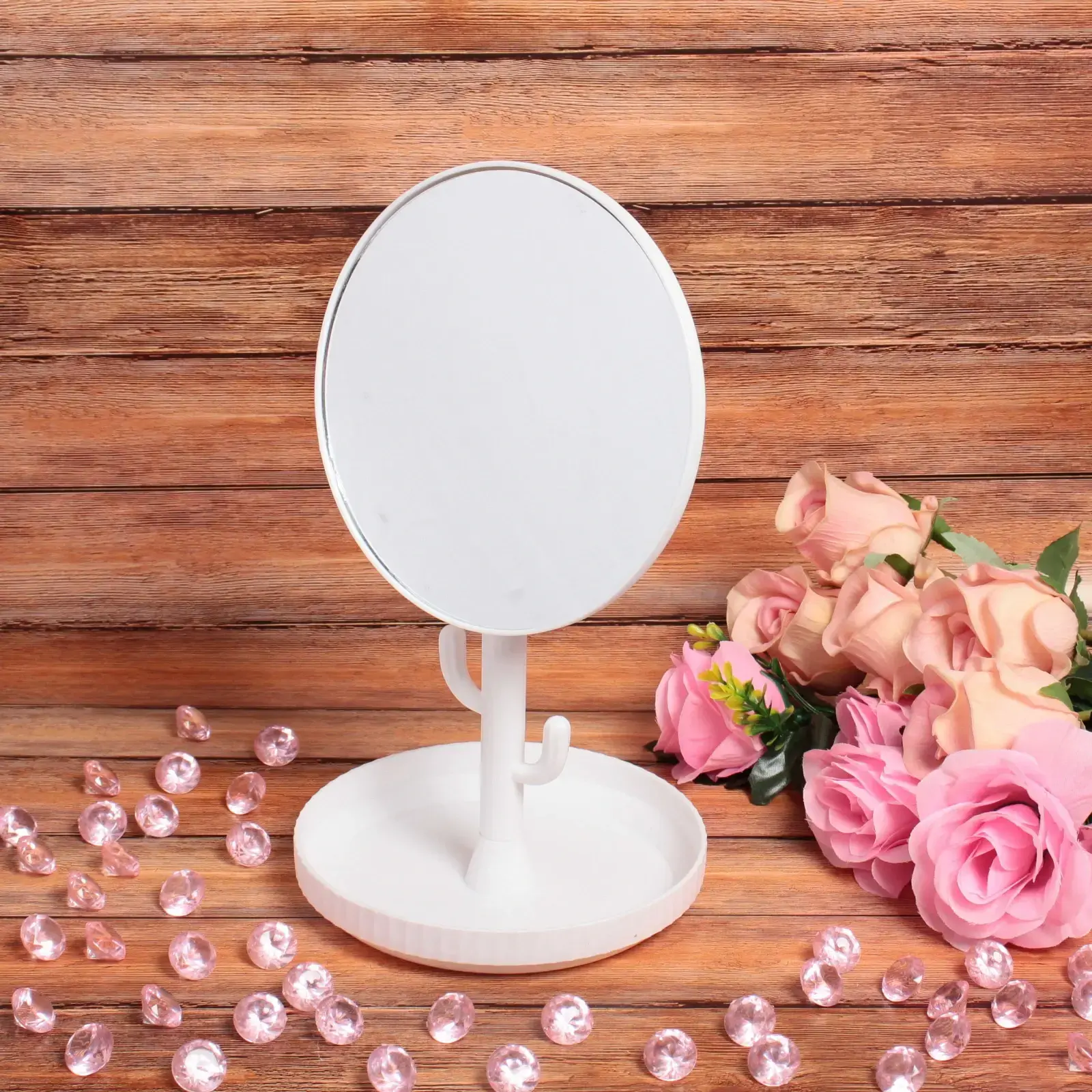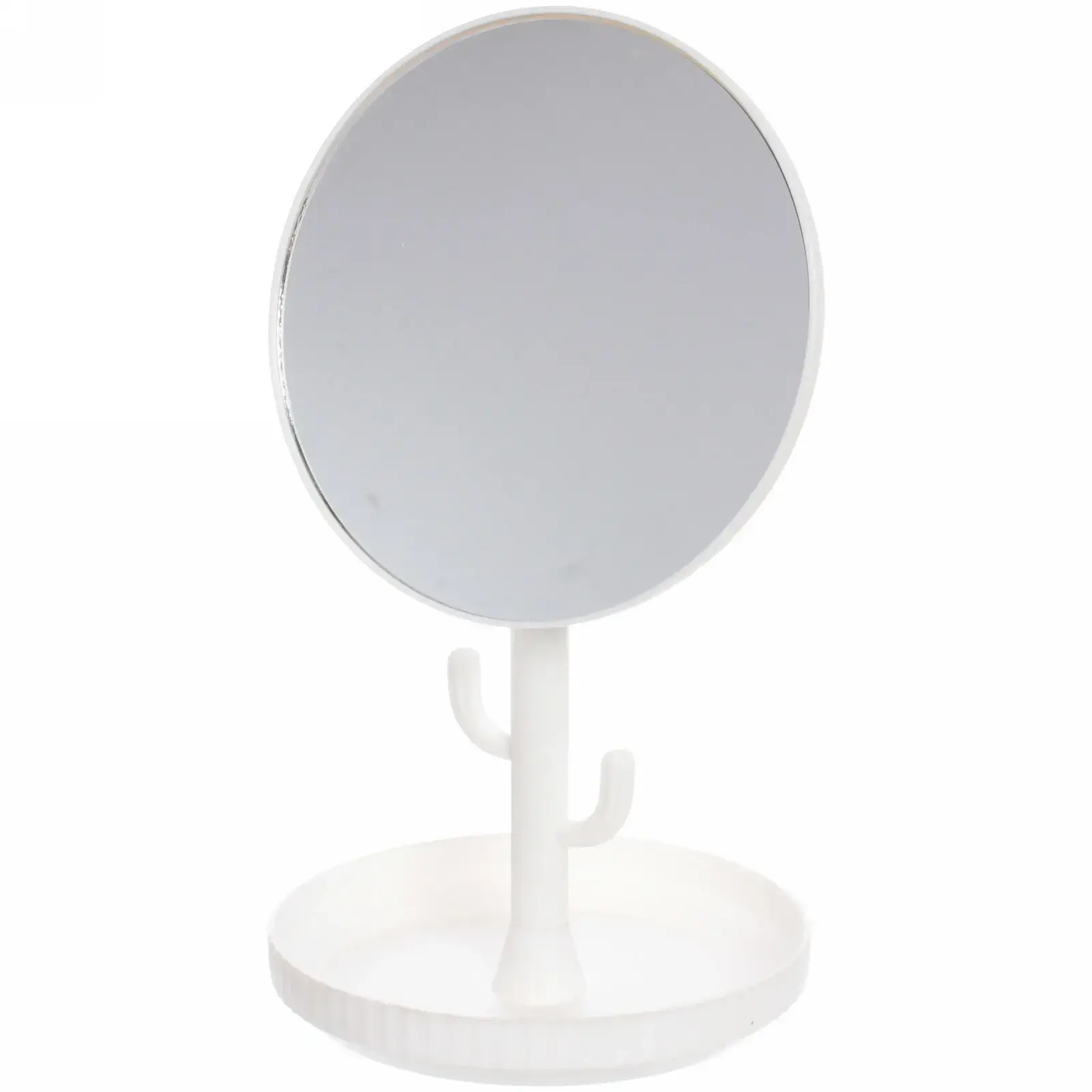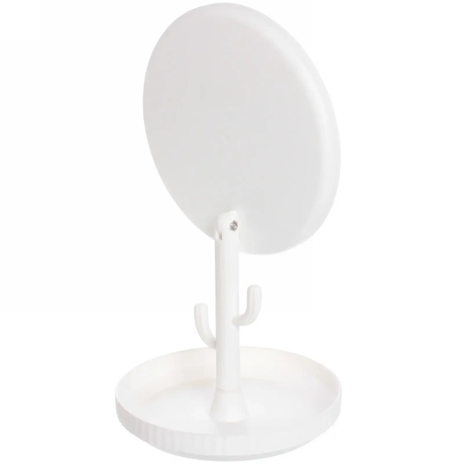 Зеркало выполнено из качественного пластика и стекла, что обеспечивает его долговечность и легкость в уходе. Подставка имеет форму кактуса с двумя выступами, которые могут служить для подвешивания мелких предметов. Это делает зеркало не только функциональным, но и стильным аксессуаром для вашего дома.