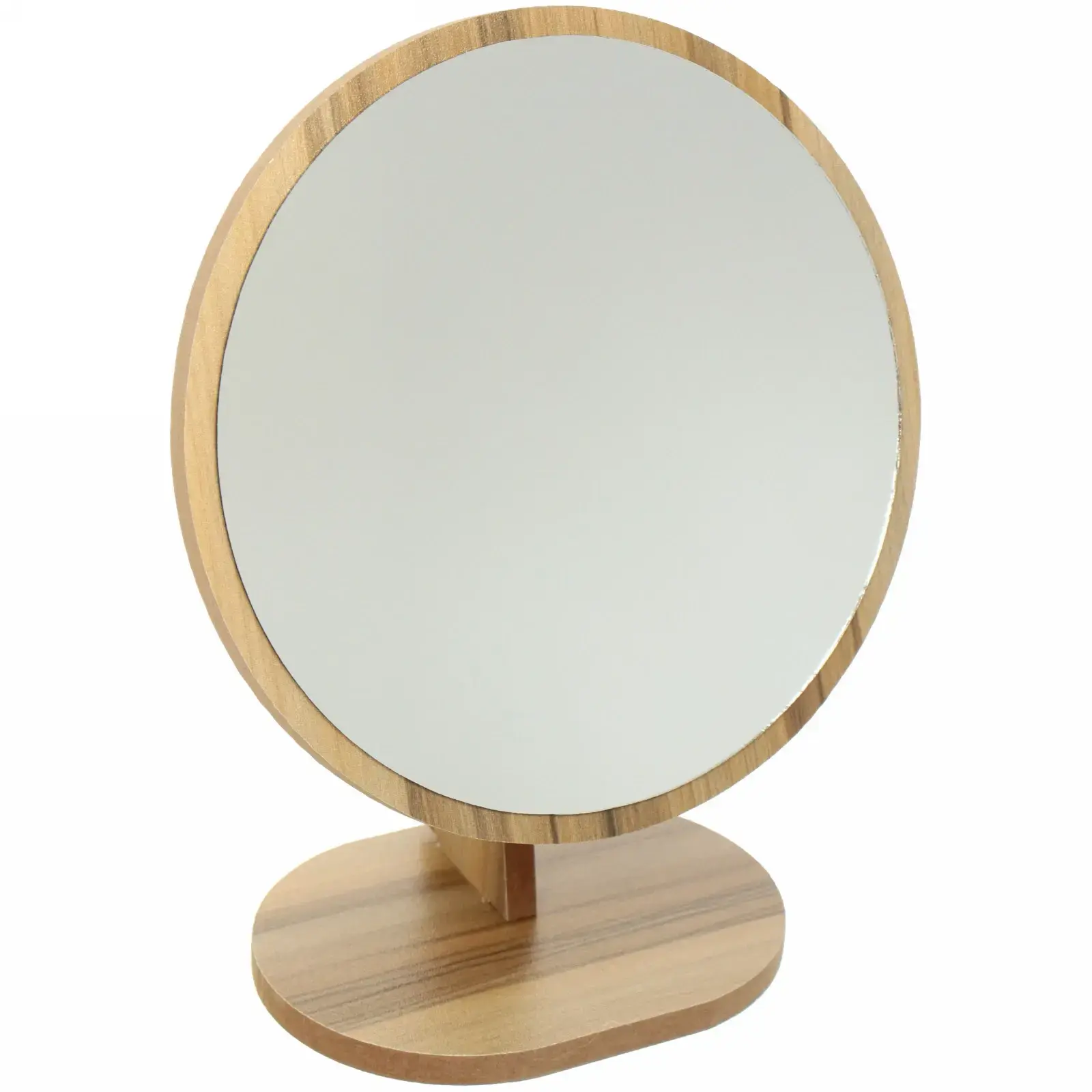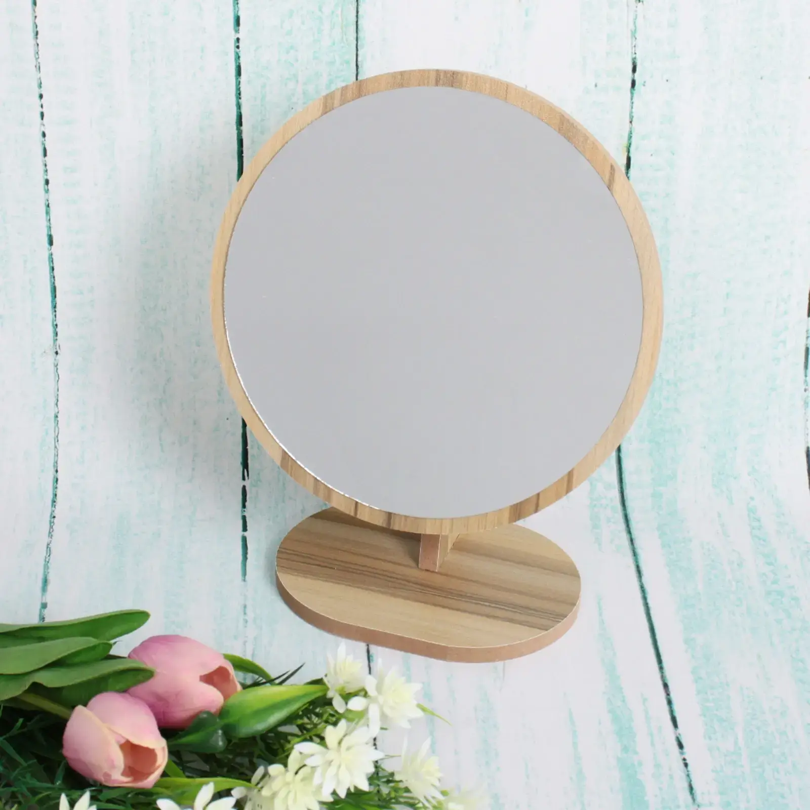 Размер зеркала составляет 17 см в диаметре, что делает его компактным и удобным для настольного использования. Рама выполнена из качественного дерева, а отражающая поверхность — из прочного стекла. Это зеркало станет не только функциональным, но и стильным элементом вашего интерьера.