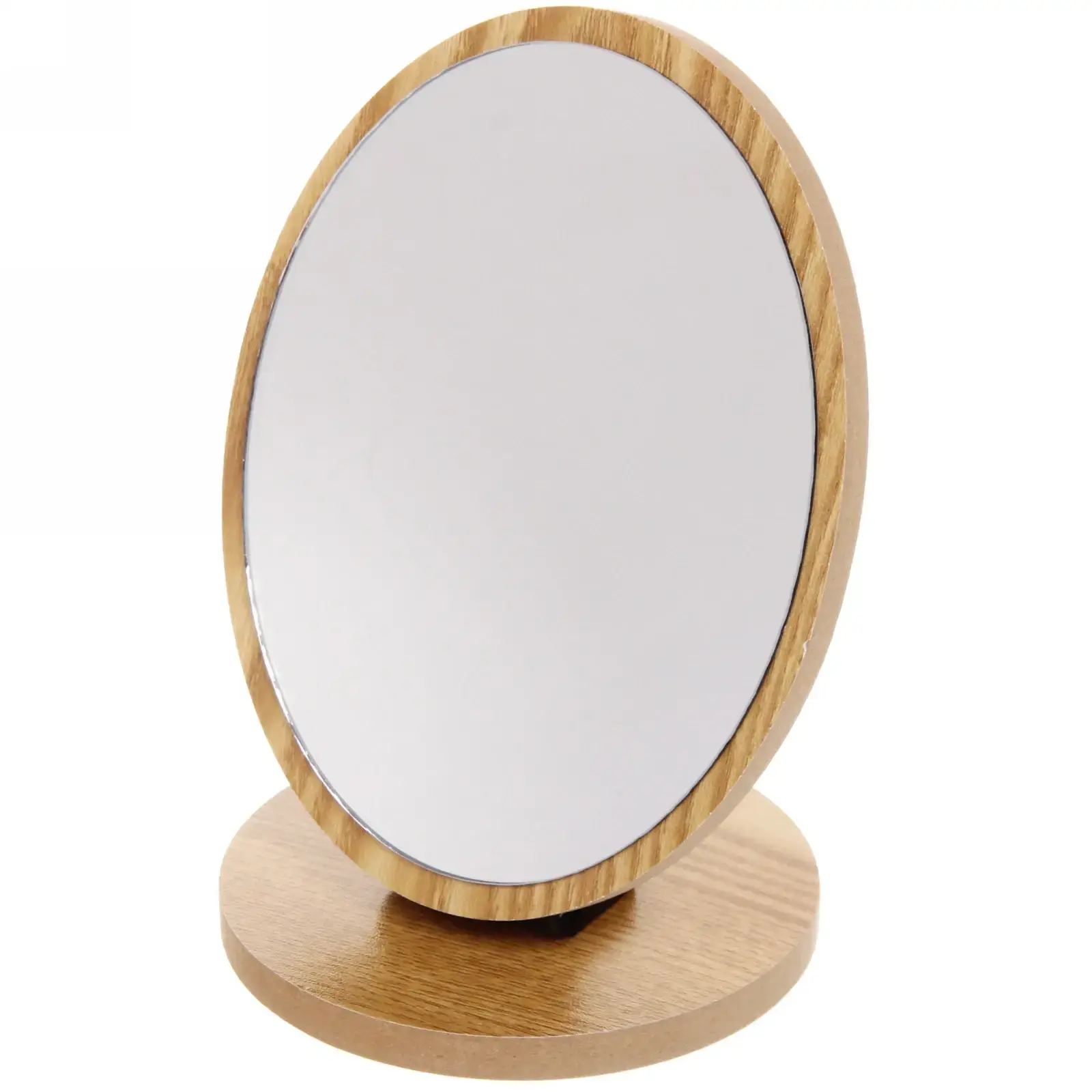 Зеркало выполнено из высококачественного дерева с гладкой стеклянной поверхностью, что делает его не только стильным, но и практичным. Оно легко очищается от загрязнений, а его прочная конструкция обеспечивает стабильность при использовании. Это зеркало станет отличным подарком для себя или близких, добавив нотку элегантности в повседневную рутину.