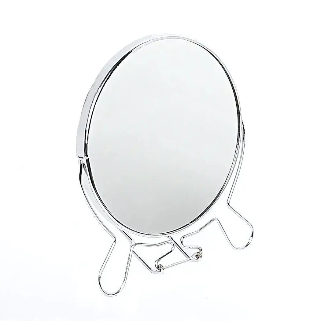Зеркало удобно размещается на столе или туалетном столике, а его компактный размер (d14 см) позволяет легко переносить его в сумке или брать с собой в поездки. Оно идеально подходит как для личного использования, так и в качестве подарка для друзей и близких. Металлическая оправа обеспечивает надежность и долговечность, а гладкая поверхность зеркала гарантирует четкое отражение.