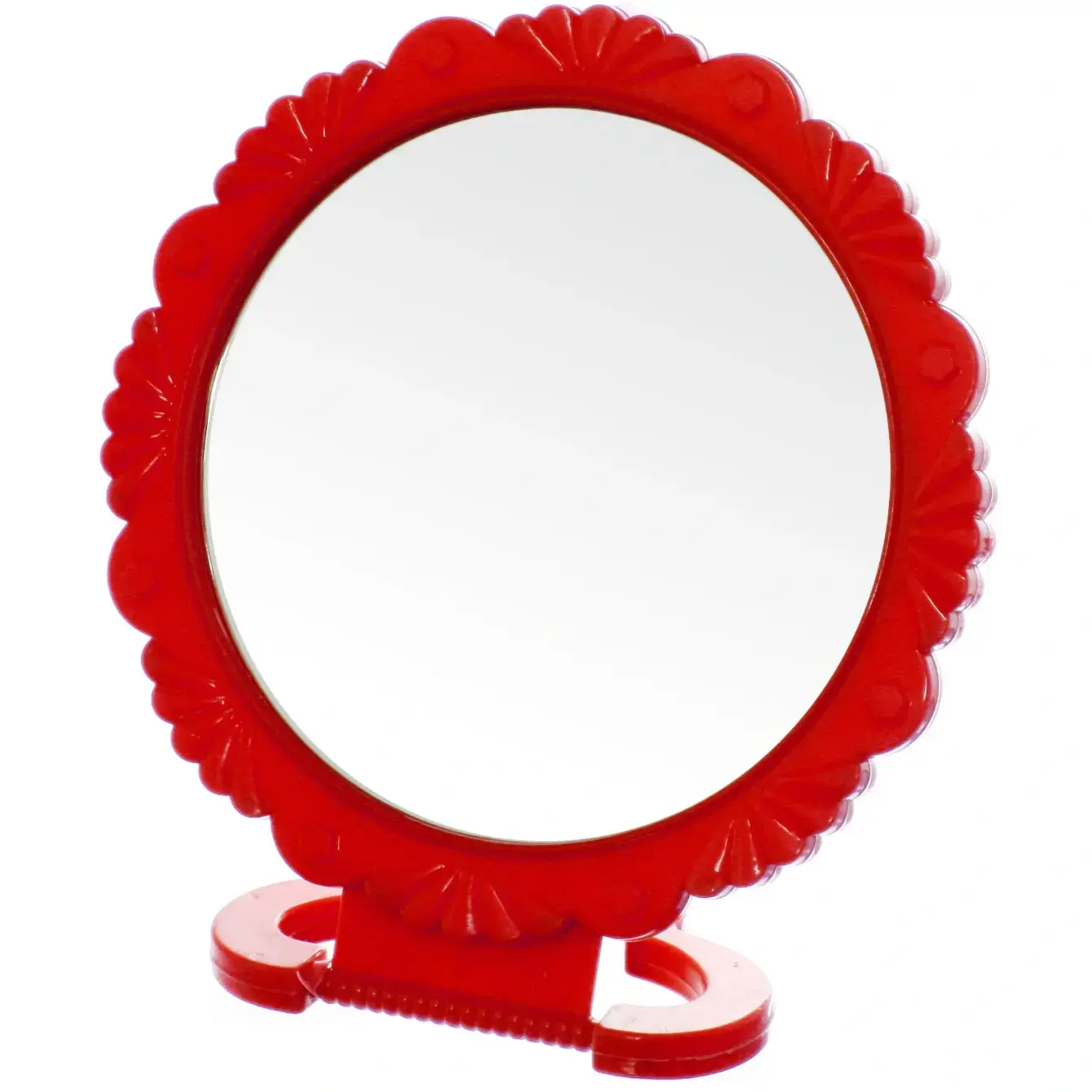 Зеркало имеет диаметр 15 см и выполнено в ярко-красном цвете. Пластиковая рамка украшена рельефными элементами, что придает ему уникальный стиль. Это зеркало станет отличным подарком для себя или близких, добавив яркие акценты в повседневные ритуалы ухода.