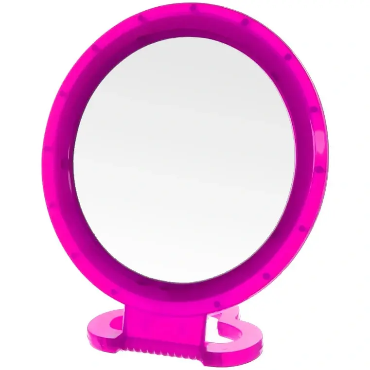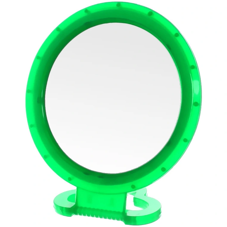 Размер зеркала составляет 16,5 см в диаметре, что делает его компактным и удобным для использования. Пластиковая рама доступна в различных цветах, включая красный, синий, зеленый и розовый, что позволяет выбрать именно тот вариант, который подойдет к вашему интерьеру. Зеркало легко чистится и не требует особого ухода, что делает его идеальным выбором для повседневного использования.