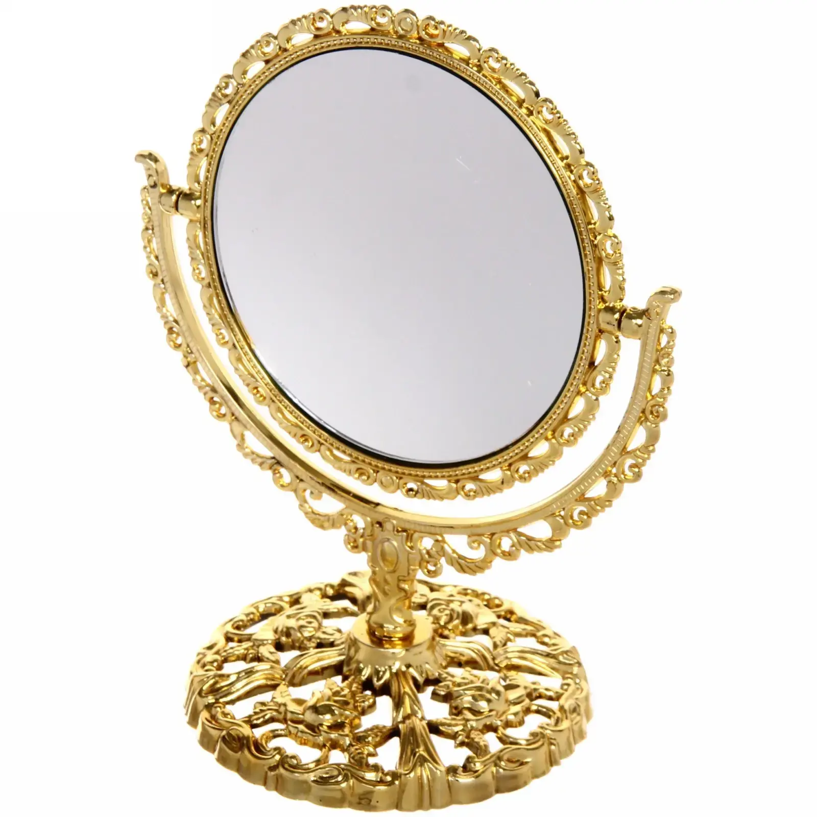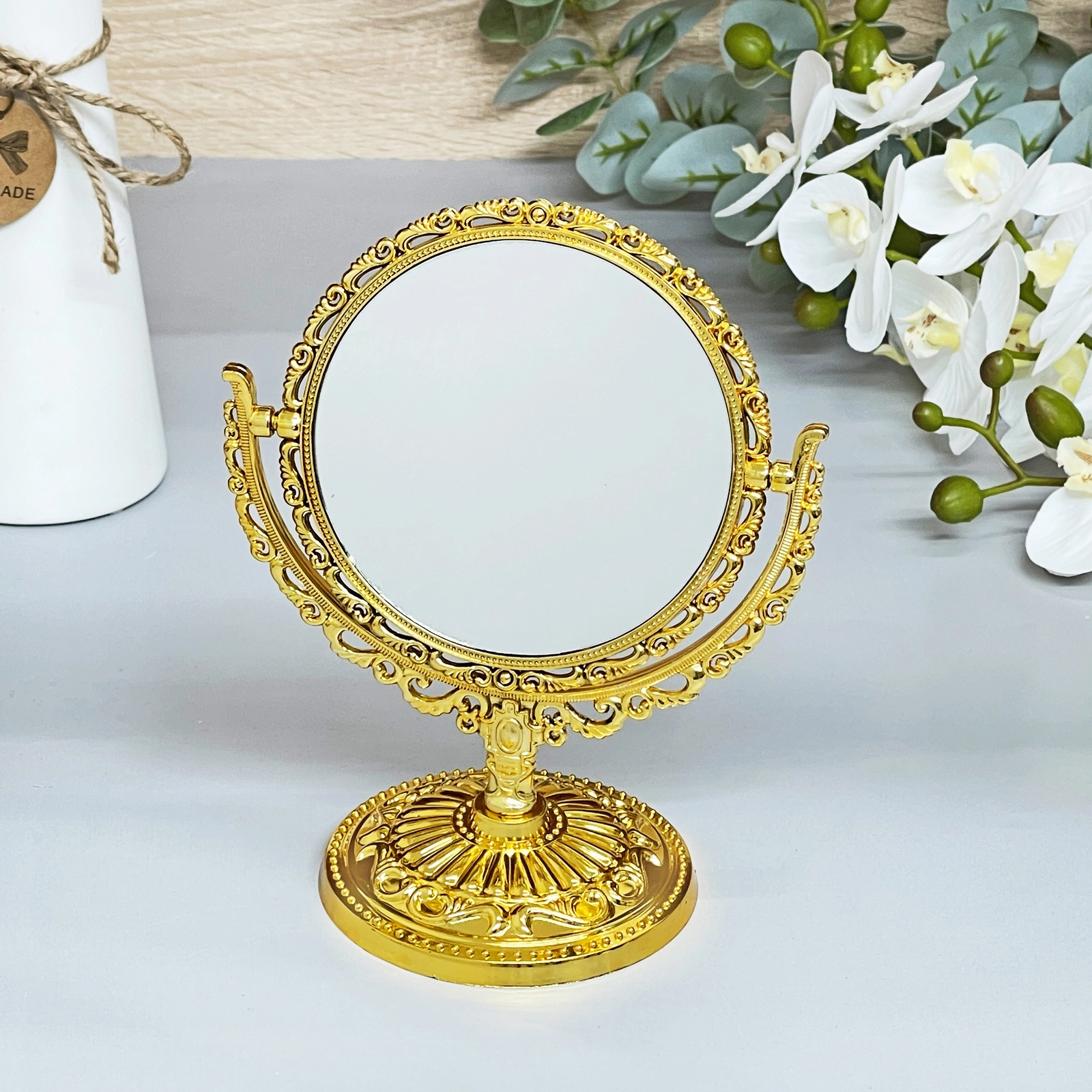 Зеркало настольное «Версаль - Круг» — это не просто аксессуар, а настоящее украшение вашего туалетного столика. С его помощью вы сможете легко и быстро привести себя в порядок, не упуская ни одной детали. Двухсторонняя конструкция позволяет рассмотреть все нюансы, что делает его идеальным помощником в уходе за кожей. Яркий и стильный дизайн в золотой оправе добавляет изысканности и шика в любой интерьер, а также делает его отличным подарком для родных и близких.