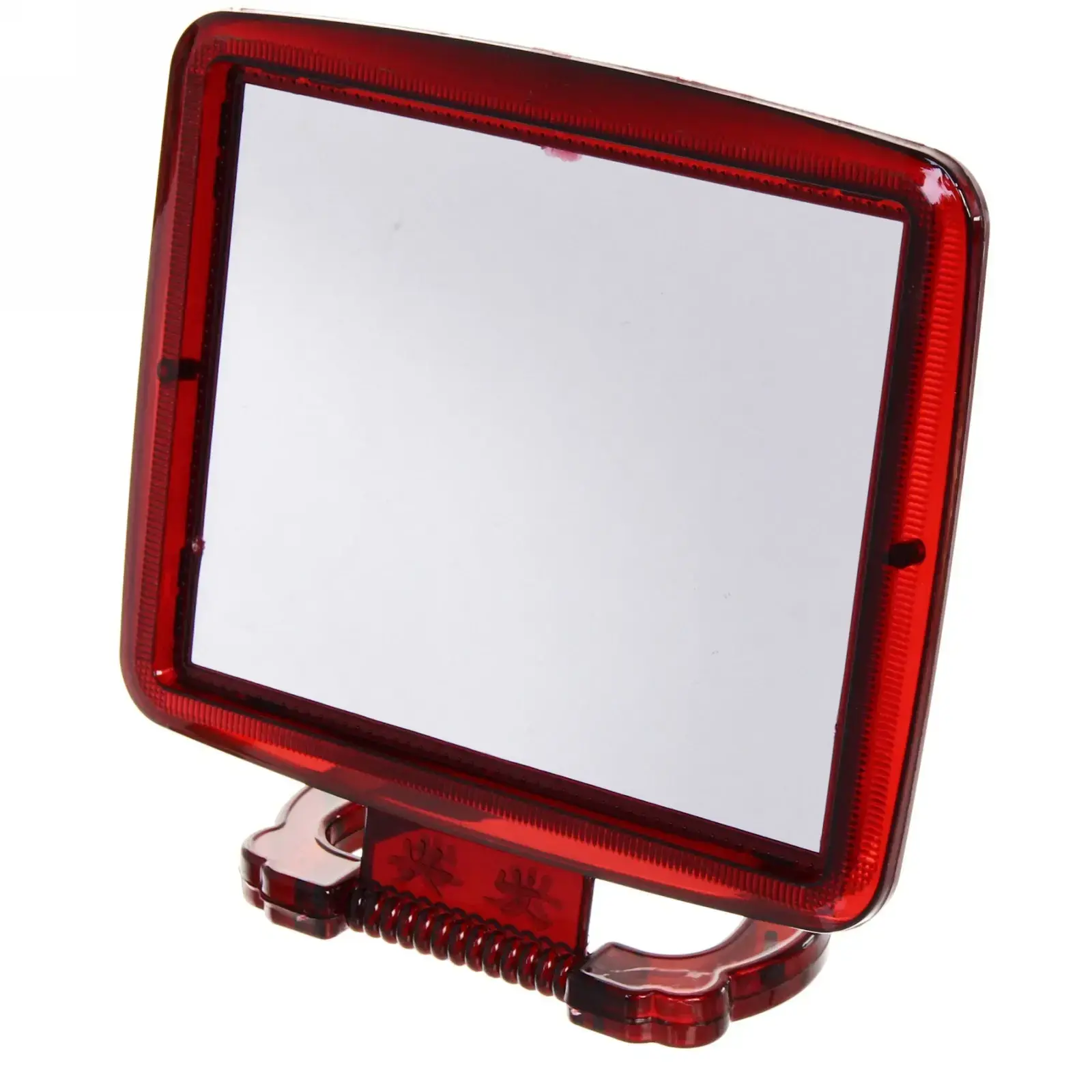 Зеркало выполнено в прямоугольной форме и имеет пластиковую рамку ярко-красного цвета, что добавляет яркости и стиля в ваш интерьер. Оно оснащено пружинным механизмом, который позволяет регулировать угол наклона, обеспечивая удобство при использовании. Это зеркало идеально подходит для личной гигиены, косметических процедур и создания макияжа, а также станет отличным подарком для ваших близких.