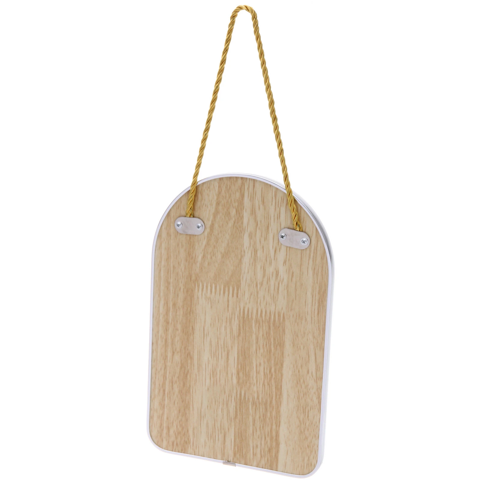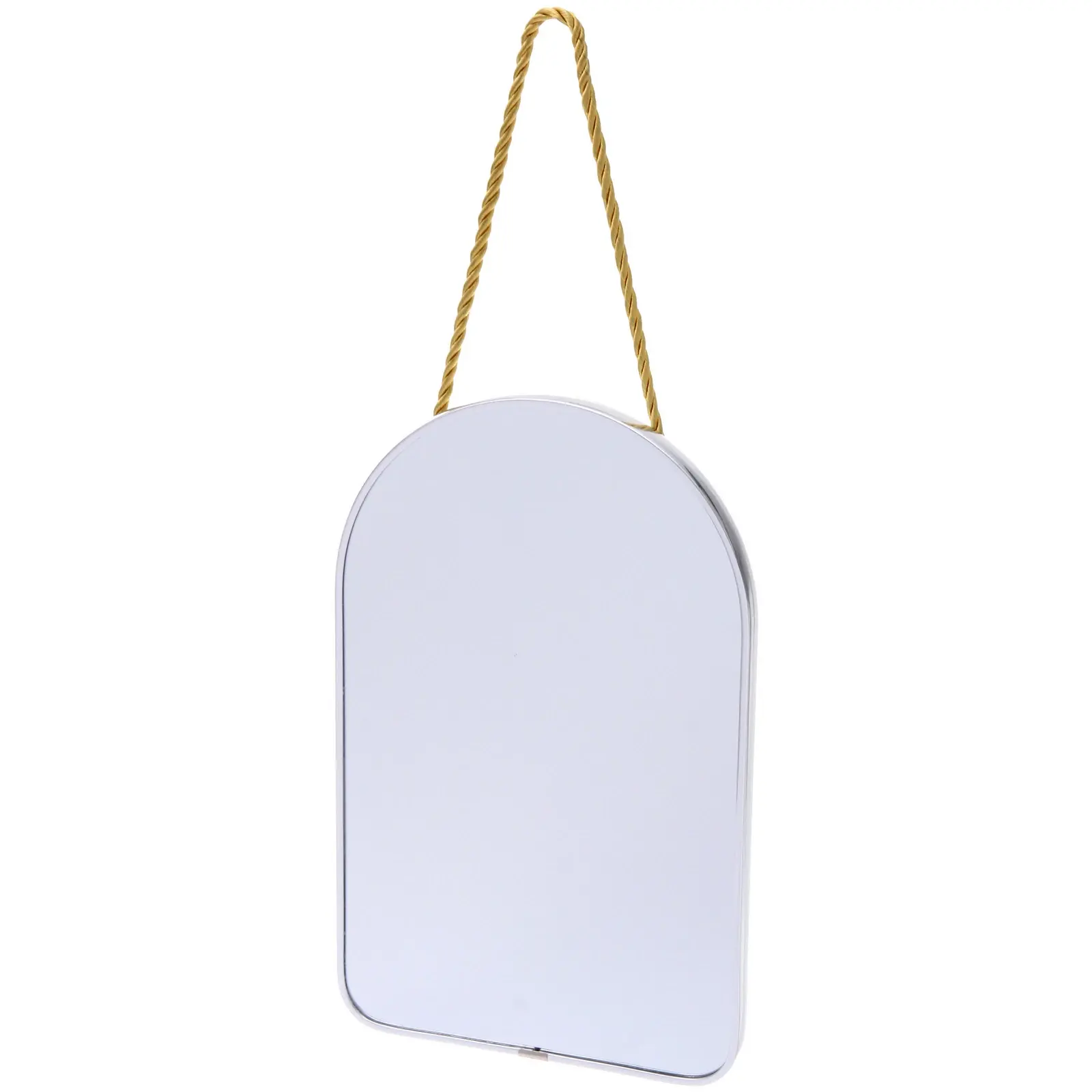 Материал зеркала — качественное стекло с металлической окантовкой, устойчивой к влаге и механическим воздействиям. Размер изделия 16,5х26см, форма трапеция — органично смотрится на стене любого типа. Верёвка жёлтого цвета позволяет подвешивать зеркало сразу после покупки, не тратя время на специальные держатели.