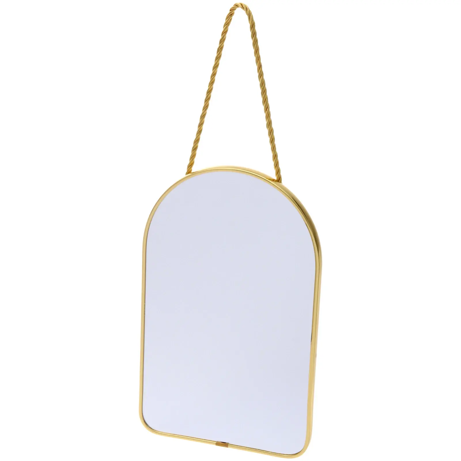 Зеркало выполнено из прочного стекла с металлическими креплениями, имеет размеры 16,5х26 см. Цвет — классическое золото, что делает его максимально универсальным для различных стилей интерьера. Идеально подходит для тех, кто ценит стиль и качество в мелочах.