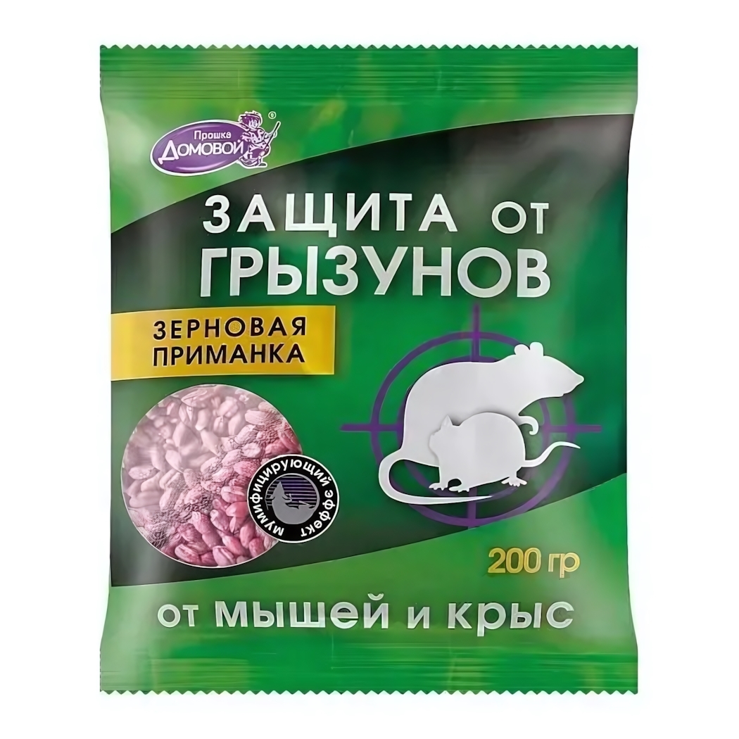 Зерновая приманка от грызунов «Домовой Прошка», 200 г, защита от мышей и крыс
