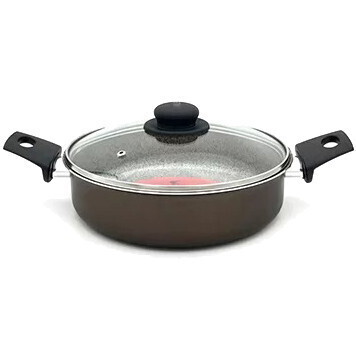 Жаровня выполнена из алюминия и имеет 7-ми слойное антипригарное покрытие цвета «Бежевый гранит». Внешнее покрытие темного шоколадного цвета придаёт ей стильный вид, а толщина дна в 2мм обеспечивает равномерное распределение тепла. Жаровня допускает чистку в посудомоечной машине, что делает её использование ещё более удобным.