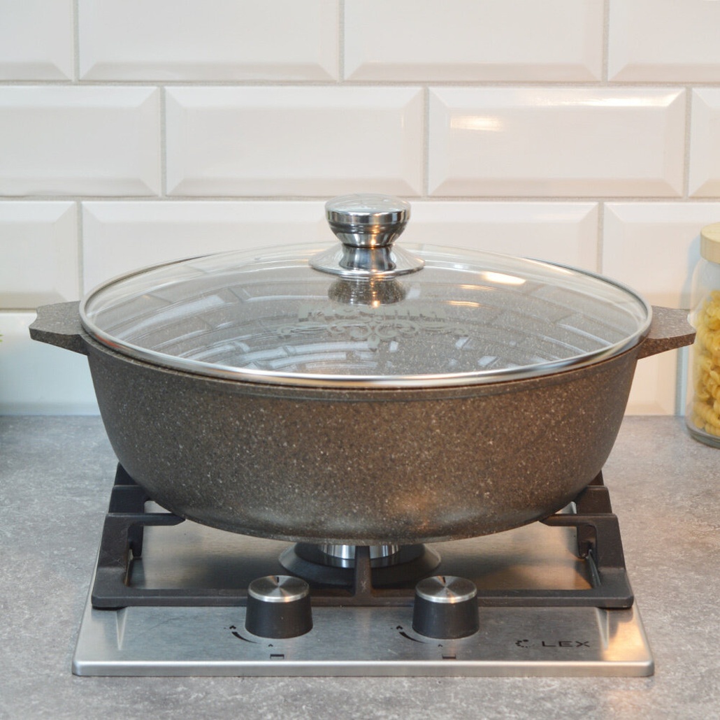 Жаровня 6 л, диаметр 32 см, коричневый, алюминий литой, антипригарное покрытие, стеклянная крышка – «premium mokko»