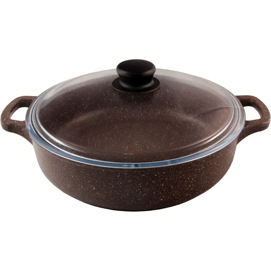Жаровня литая с толстым дном 28 см, стеклянная крышка, литой алюминий, серия «Доломит»
