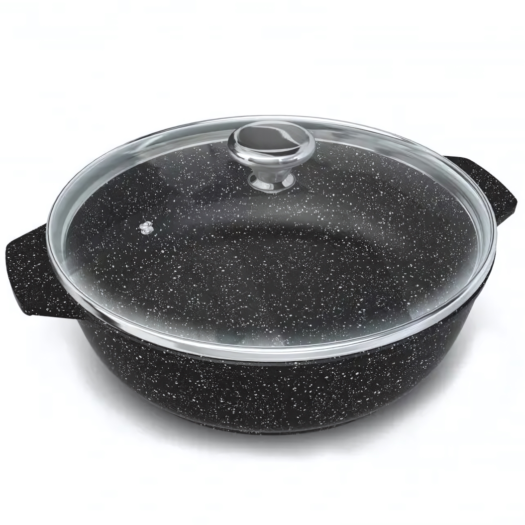 Эта жаровня является отличным помощником для приготовления разнообразных блюд благодаря равномерному распределению тепла и прочной конструкции из литого алюминия. Надежный материал и толстые стенки обеспечивают долговечность и безопасность в использовании.