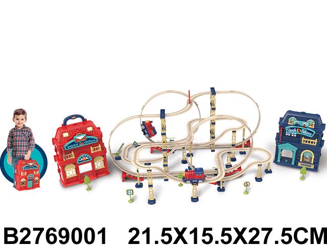 Железная дорога с автотреком в чемодане, 21.5×15.5×27.5см, пластик
