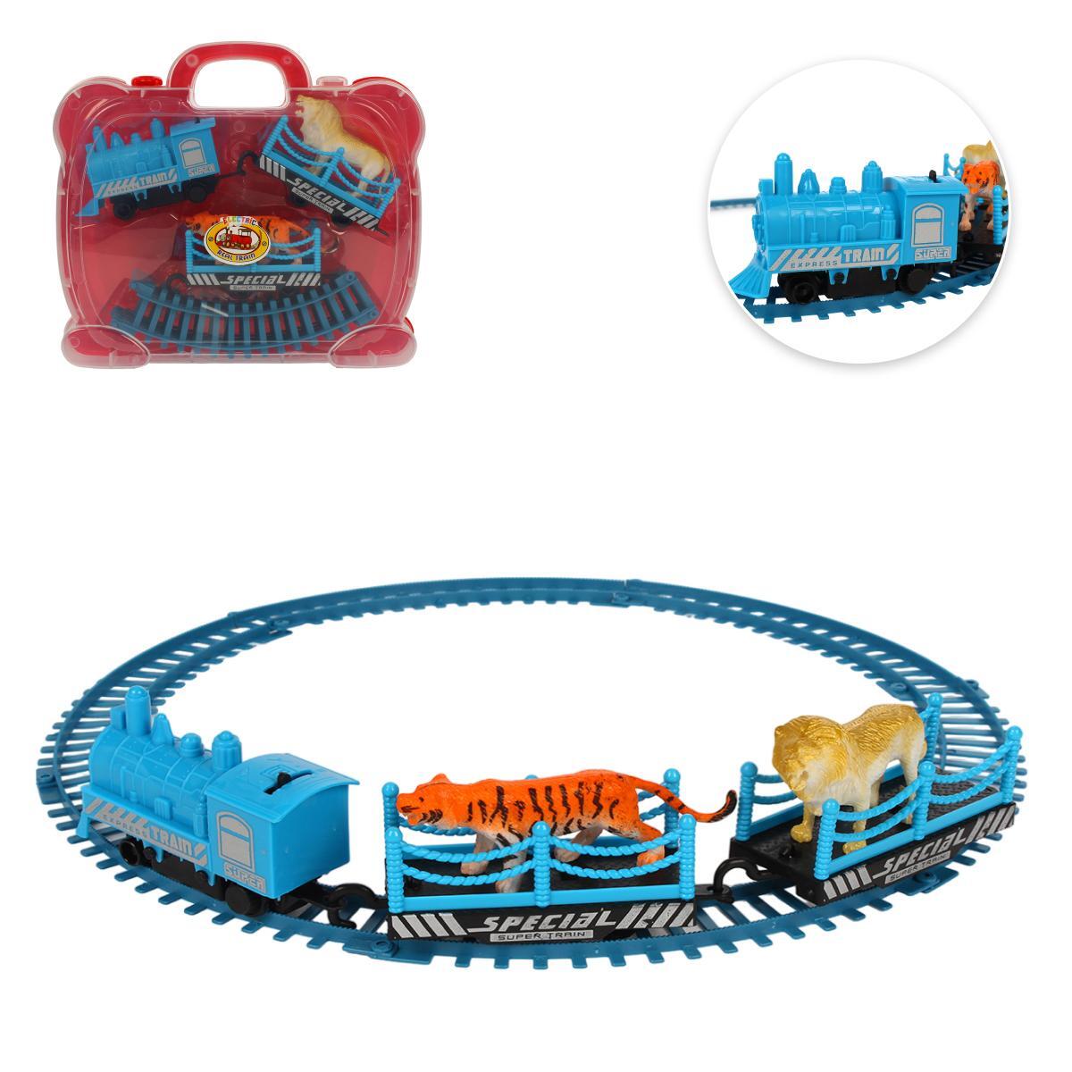 Железная дорога интерактивная «Special Train» с чемоданом, фигурками льва и тигра, пластик, 21x19 см
