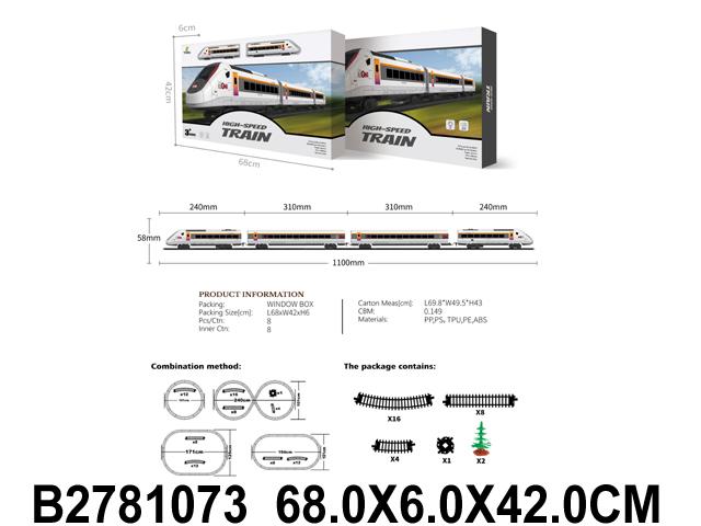 - Электрический поезд из четырёх вагонов (общая длина 110 см)