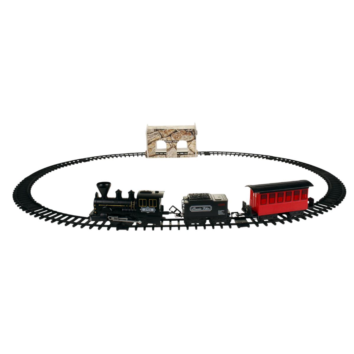 Железная дорога детская "Classic Train", 15 деталей, свет, звук, дым, черный/красный, 50x29 см