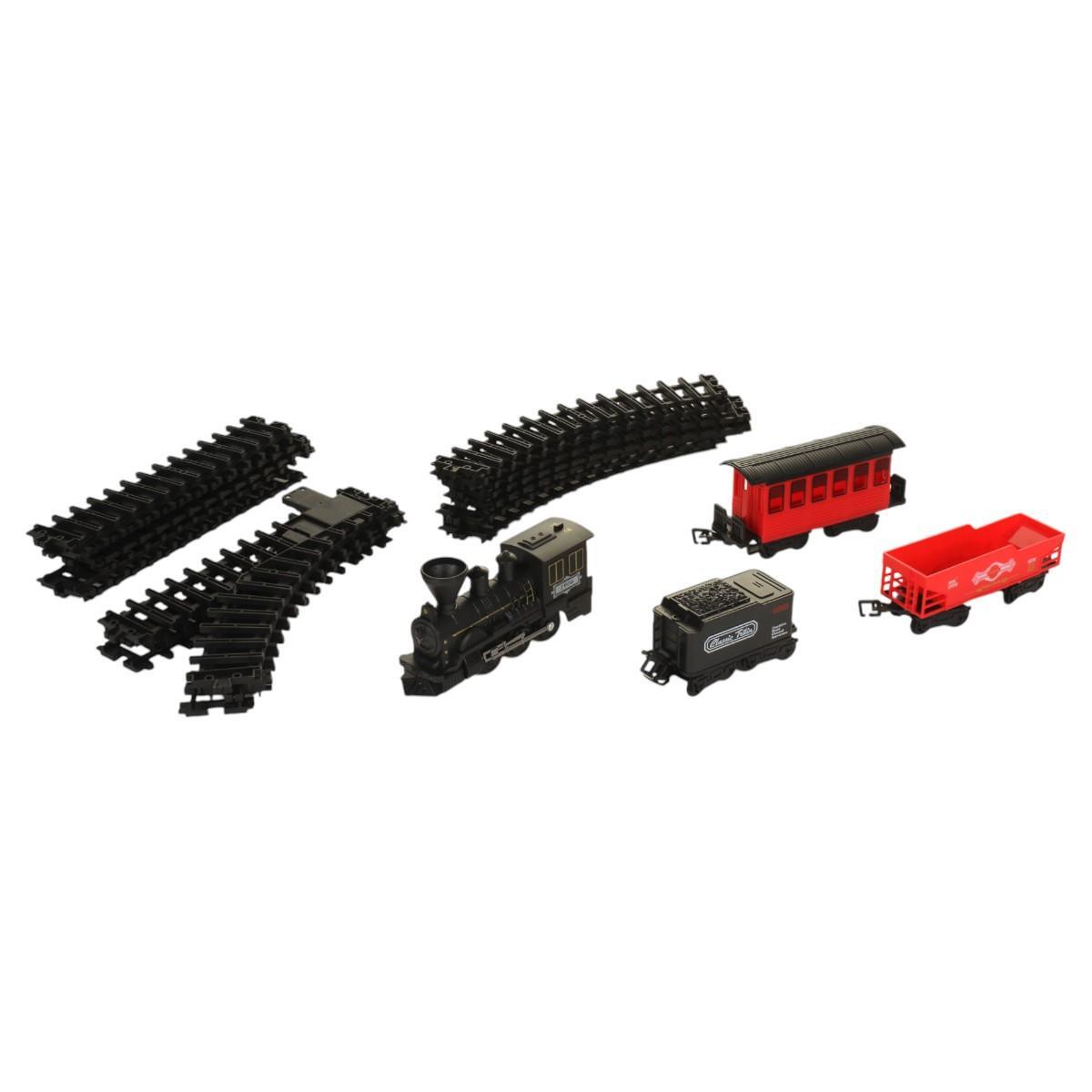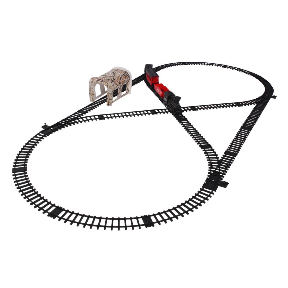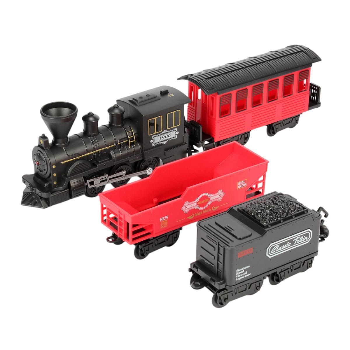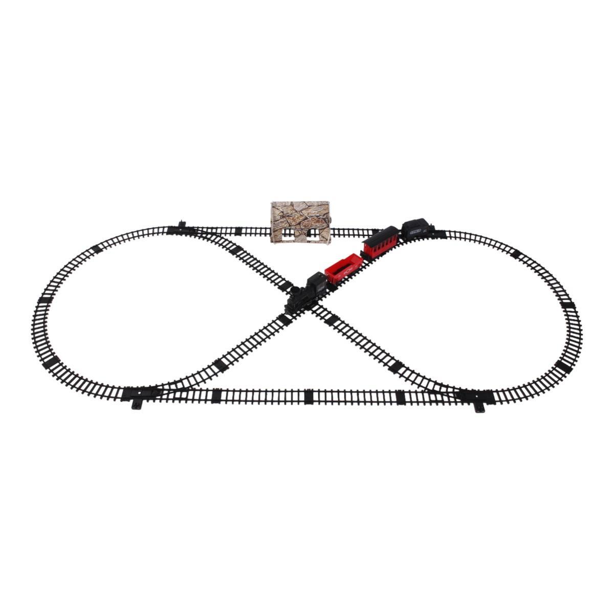 Железная дорога с паровозом и 3 вагонами, свет/звук, дым, пластик, 50х29х5.5см