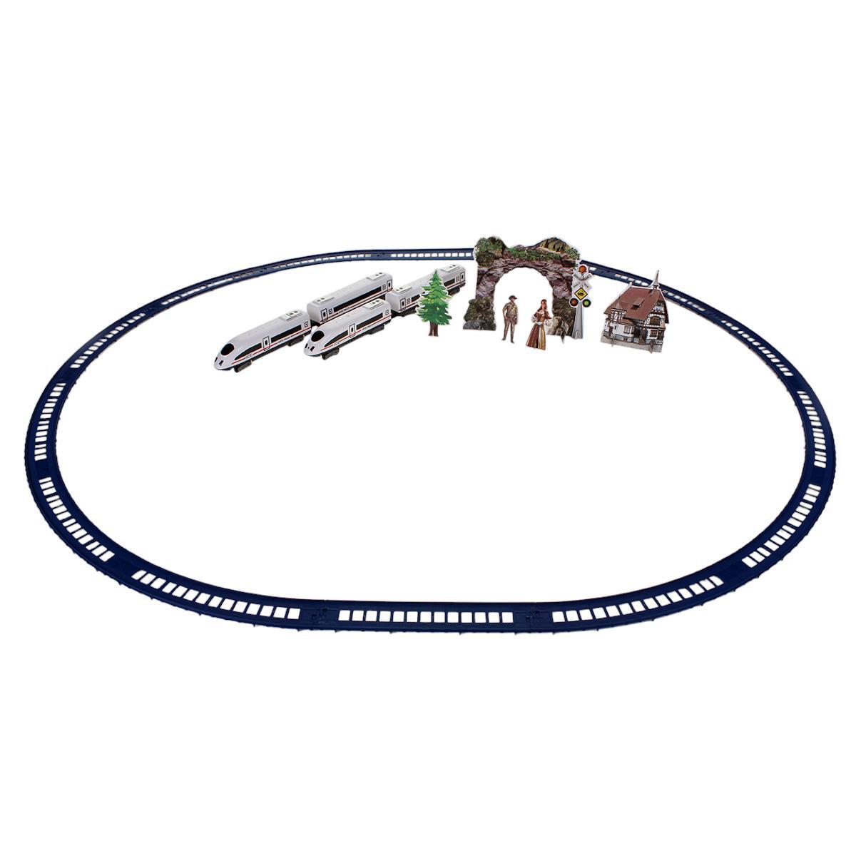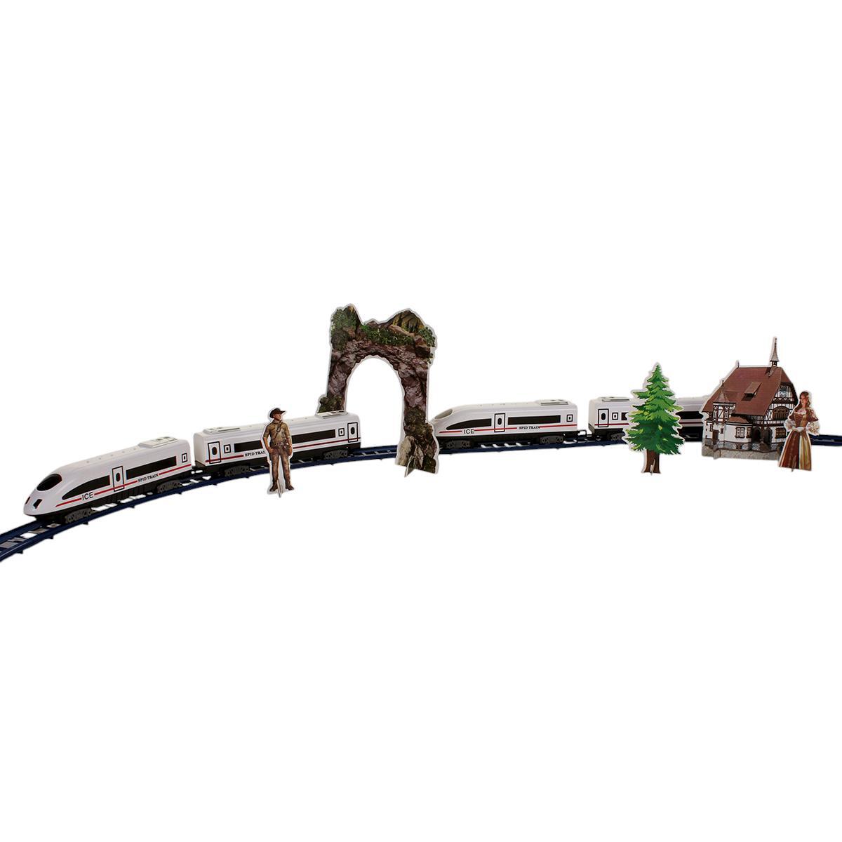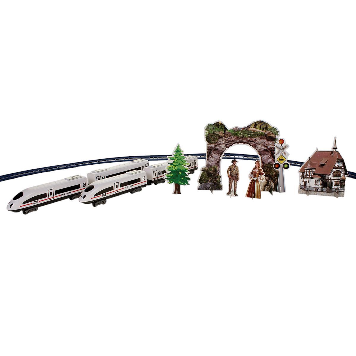 Комплект включает локомотив, вагон и элементы окружения, позволяя ребёнку собрать собственную трассу и разыграть множество сценариев. Идеально подходит для развития мелкой моторики, воображения и внимания. Материал — прочный пластик, обеспечивающий долговечность и безопасность во время игр. Элементы питания в комплект не входят, что открывает возможность выбрать батарейки по желанию.