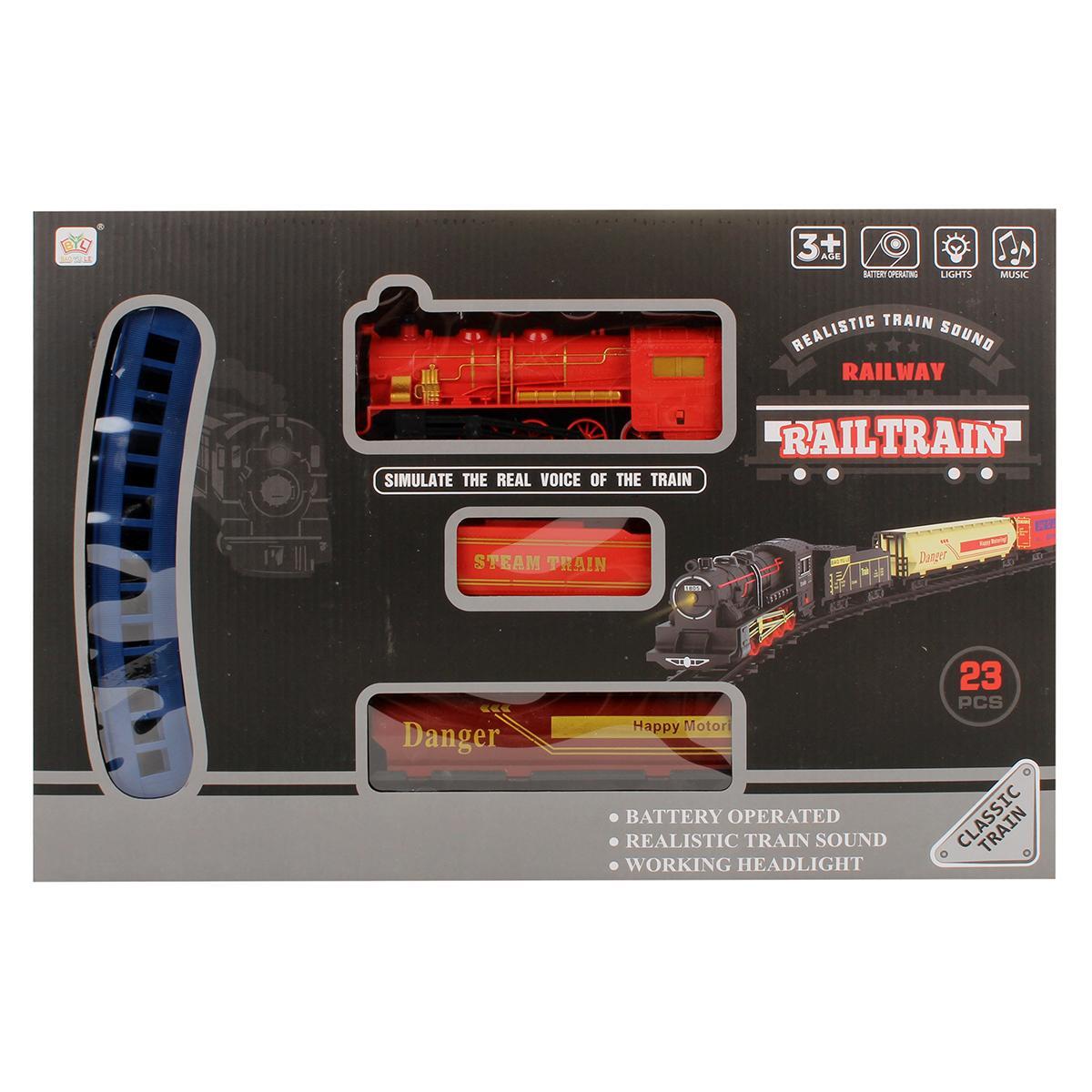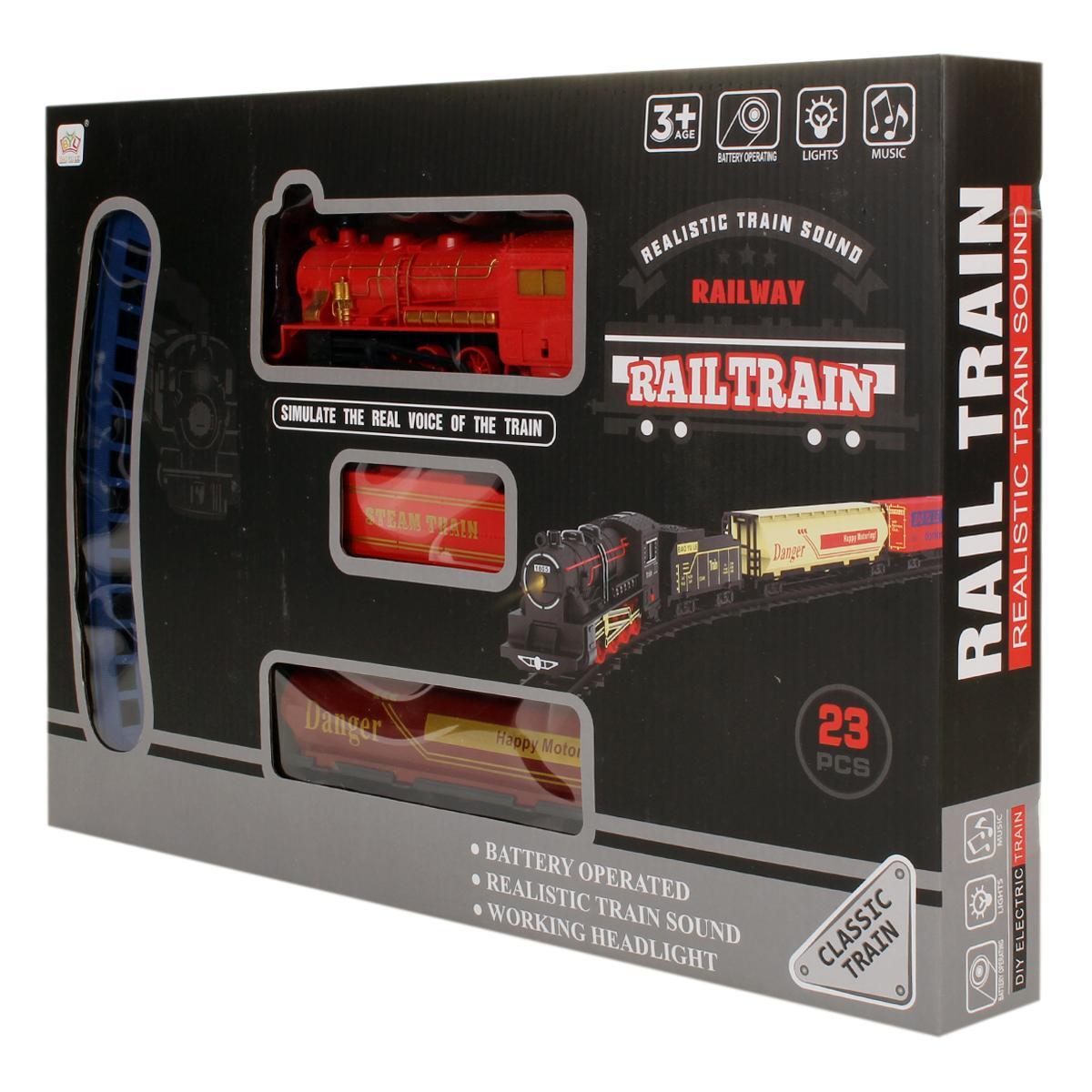 Железная дорога детская, 23 детали: локомотив, вагоны, рельсы, звук, свет