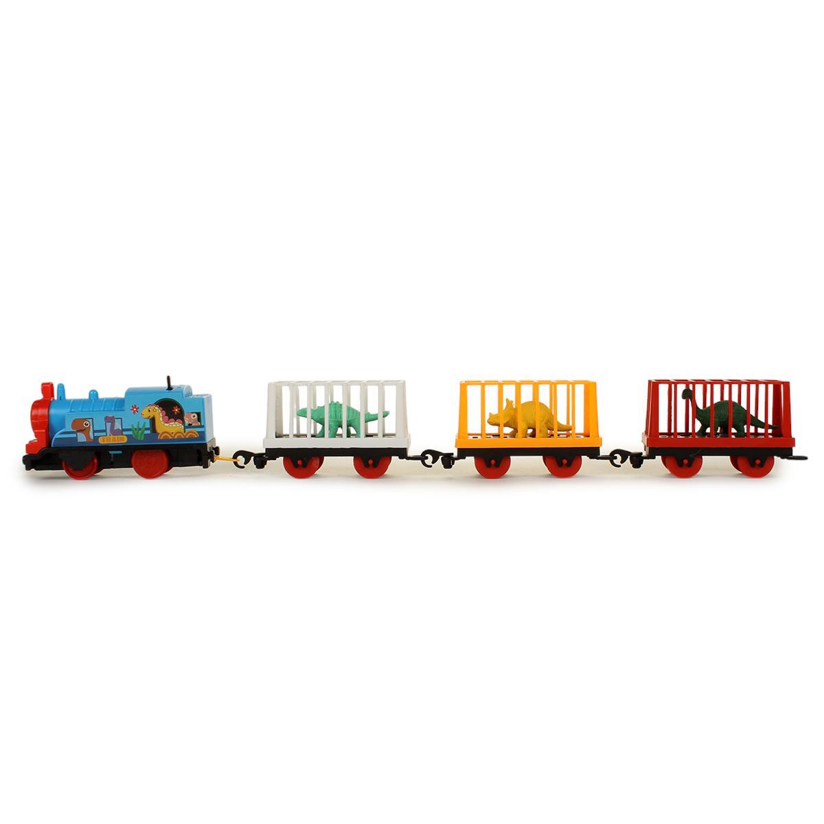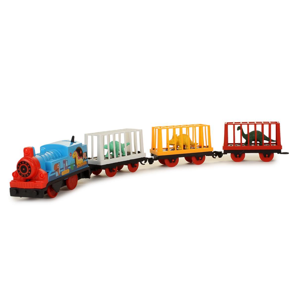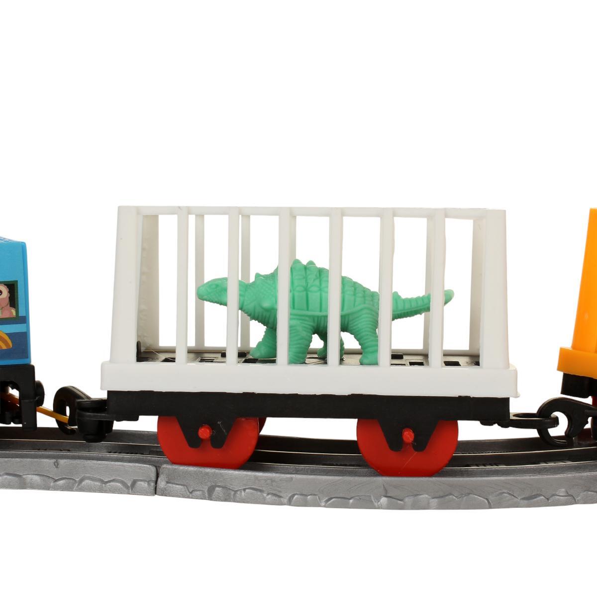 Детская железная дорога электрическая с динозаврами «66066», 3 вагона, батарейки, пластик, 30,6х22,5х4,8см