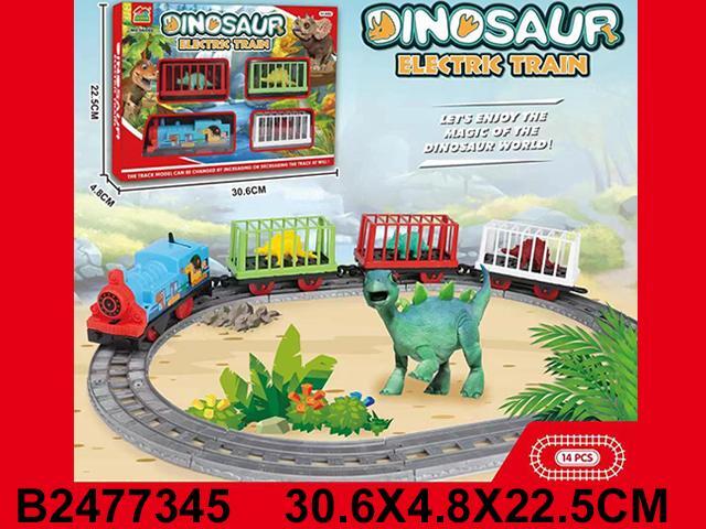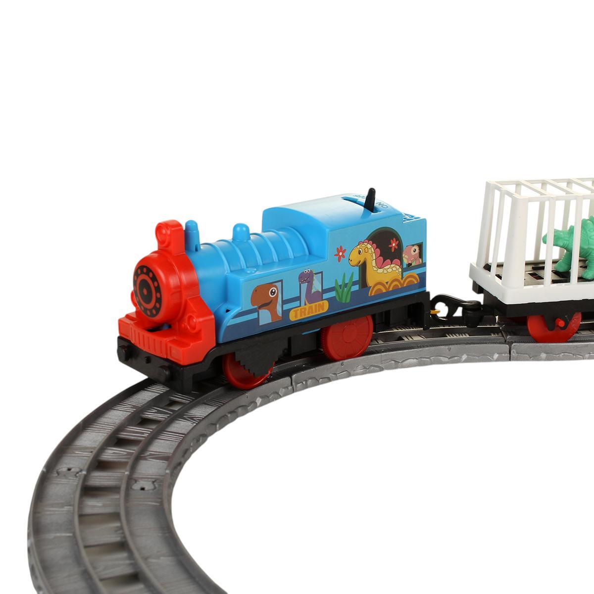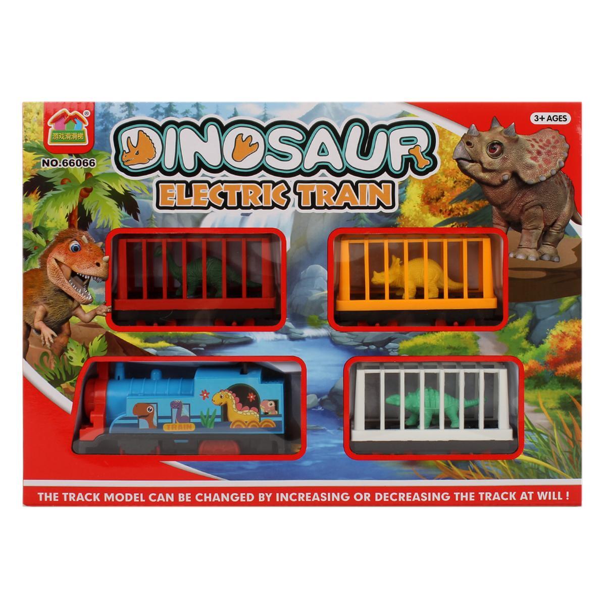 Детская железная дорога электрическая с динозаврами «66066», 3 вагона, батарейки, пластик, 30,6х22,5х4,8см