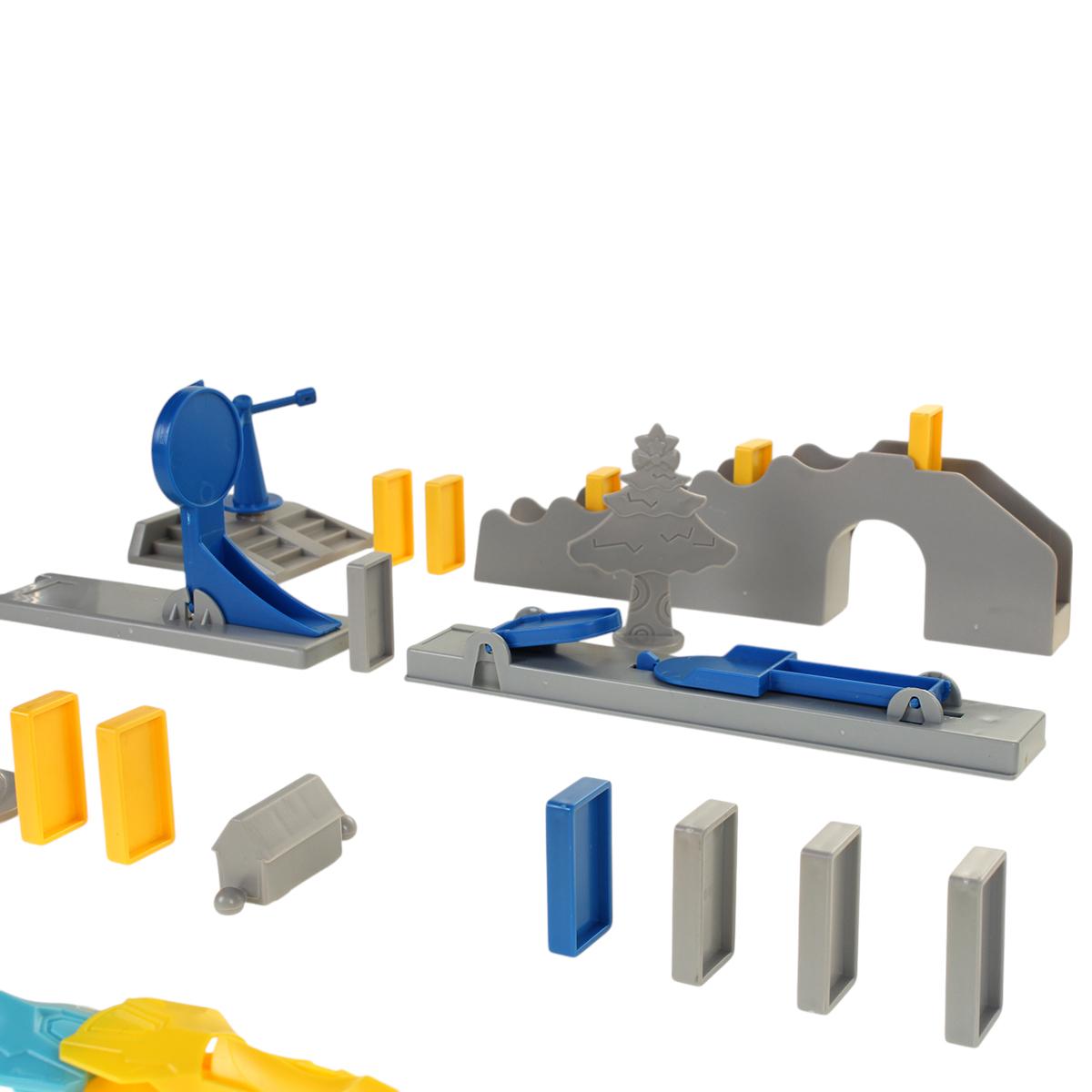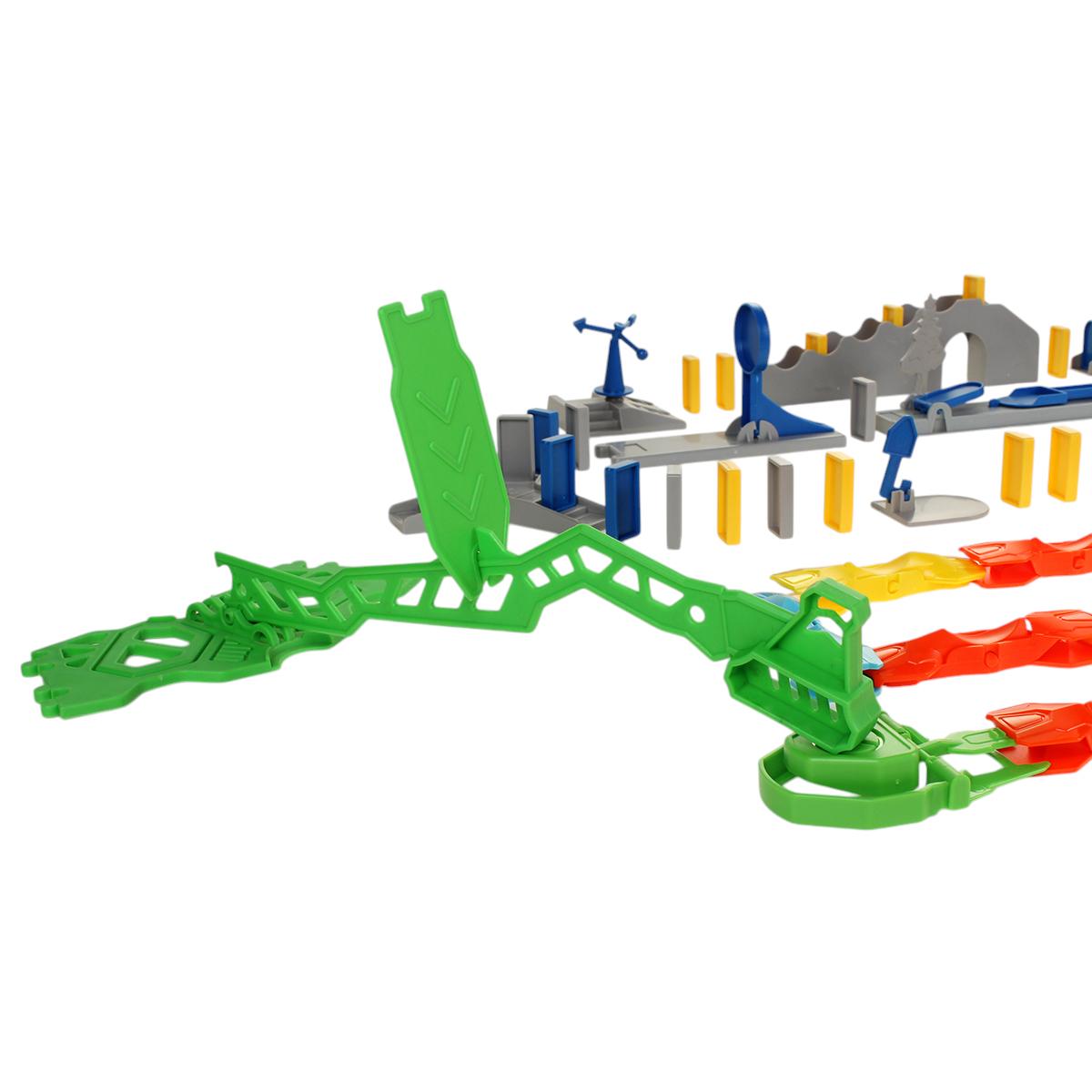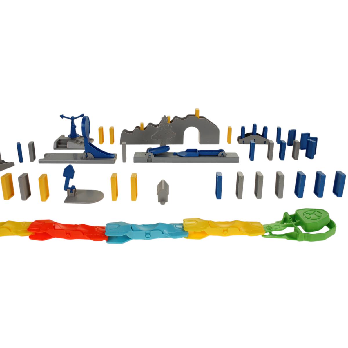 - Комплектация: Включает 120 домино и 16 дополнительных деталей для создания разнообразных трасс.