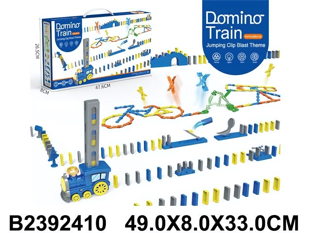 Погрузитесь в мир приключений с детской железной дорогой "Domino Train"! Этот яркий и функциональный набор не только развлечет вашего ребенка, но и поможет развить мелкую моторику, координацию и воображение. Наблюдайте, как поезд расставляет домино, создавая захватывающие цепочки!