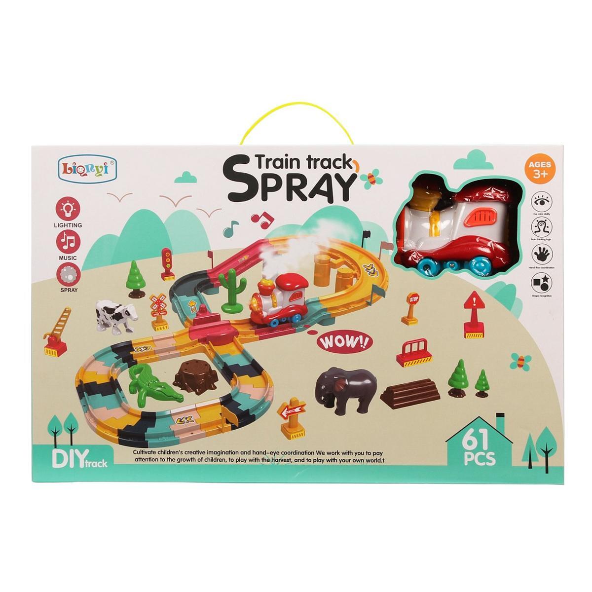 Железная дорога детская со светом, звуком и дымом, 61 элемент, пластик, разноцветная, размер упаковки 40х6,3х24 см