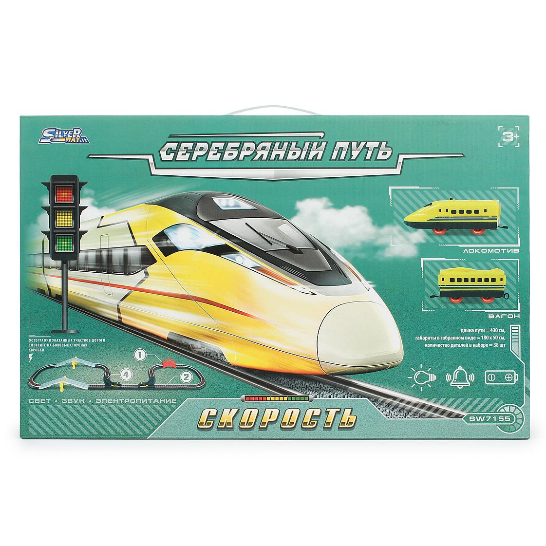Железная дорога "Серебряный путь": скорость, свет, звук, длина пути 430 см, 38 деталей