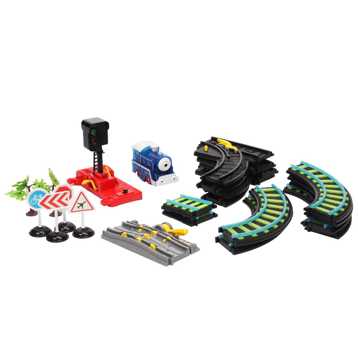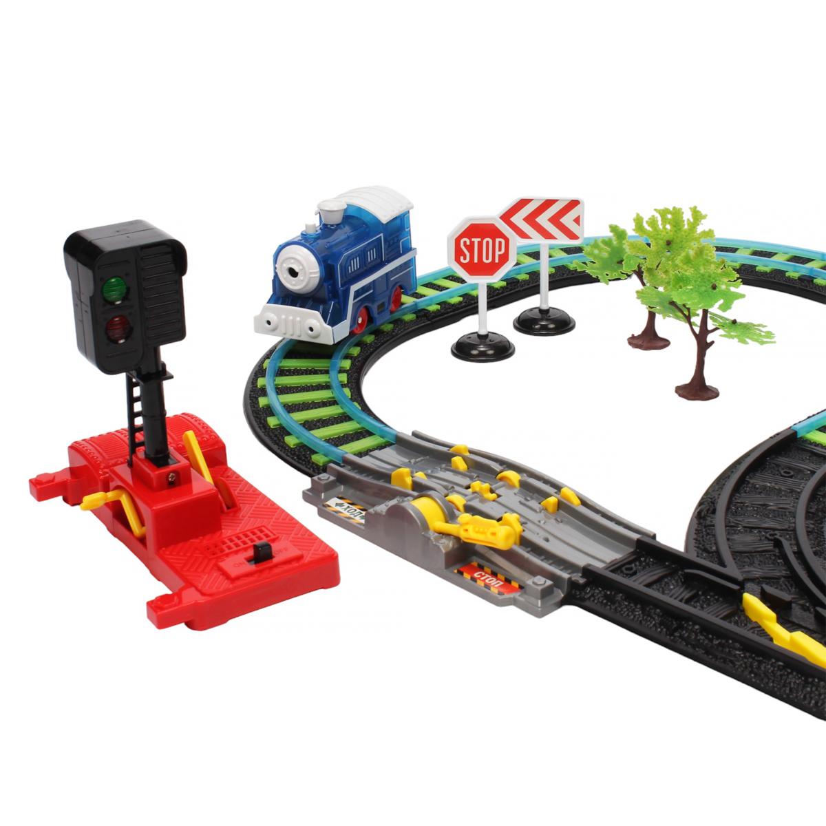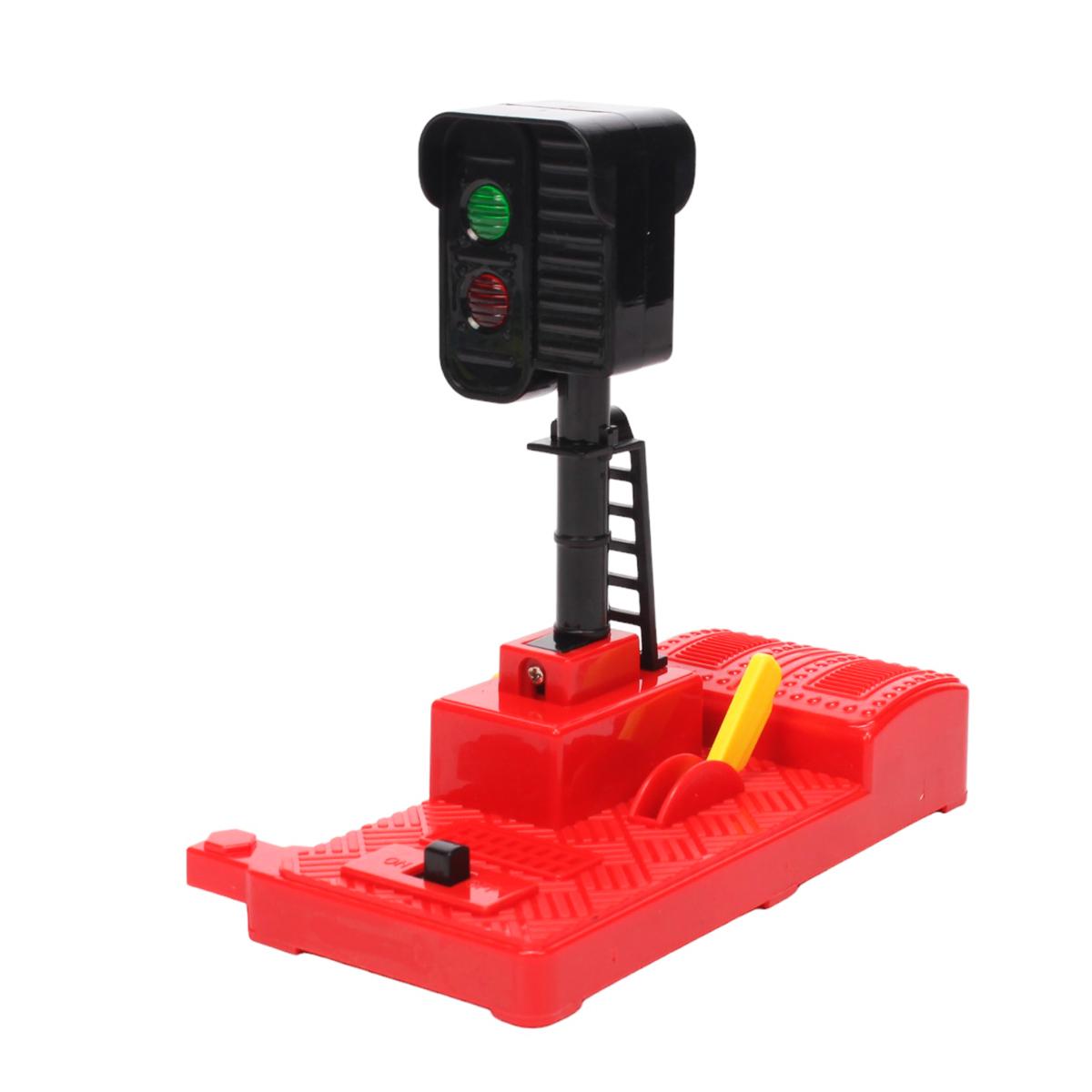 Игровой набор с подсветкой рельсов и светофором создаёт атмосферу настоящего вокзала! Собирайте маршруты, управляйте движением поезда и наблюдайте, как загораются сигнальные огни под весёлую мелодию.