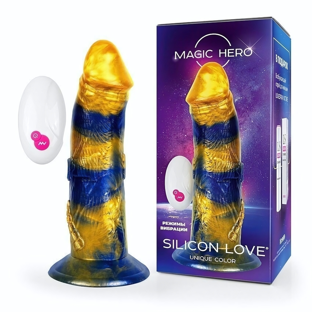 Вибратор с пультом ДУ «MAGIC HERO», 10 режимов, силикон, присоска, 21,5 см, цвет желто-синий