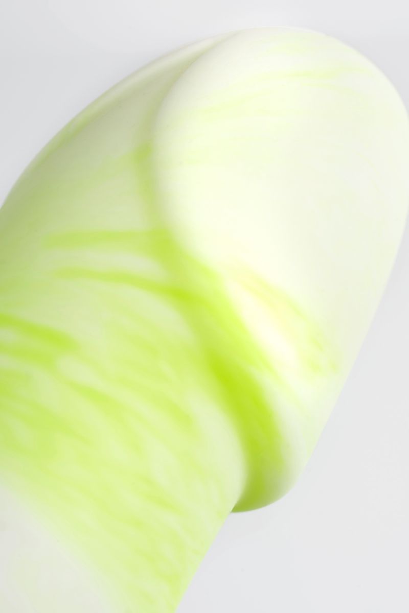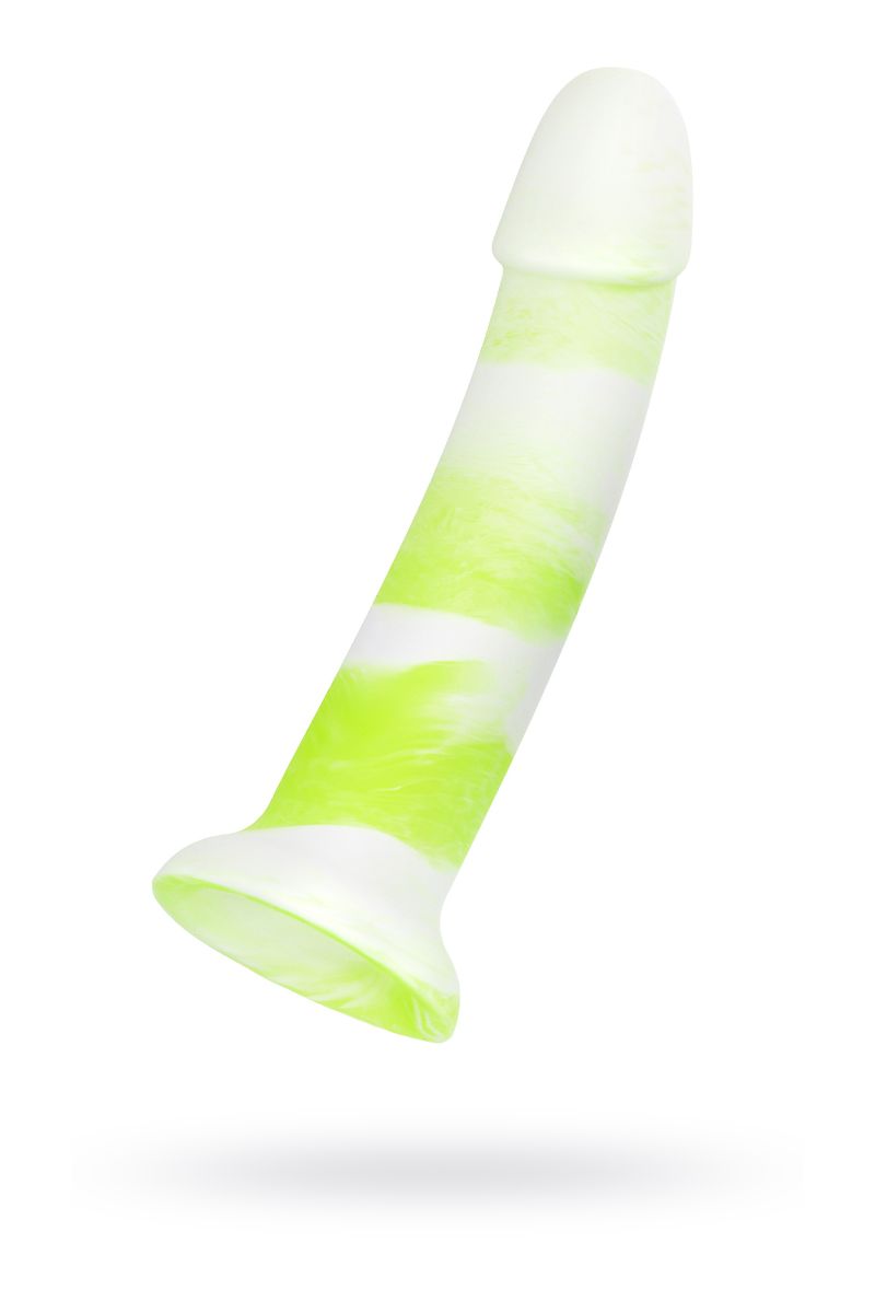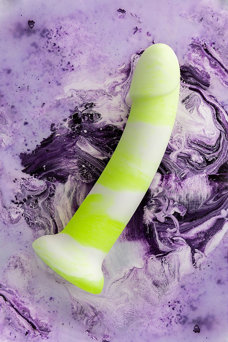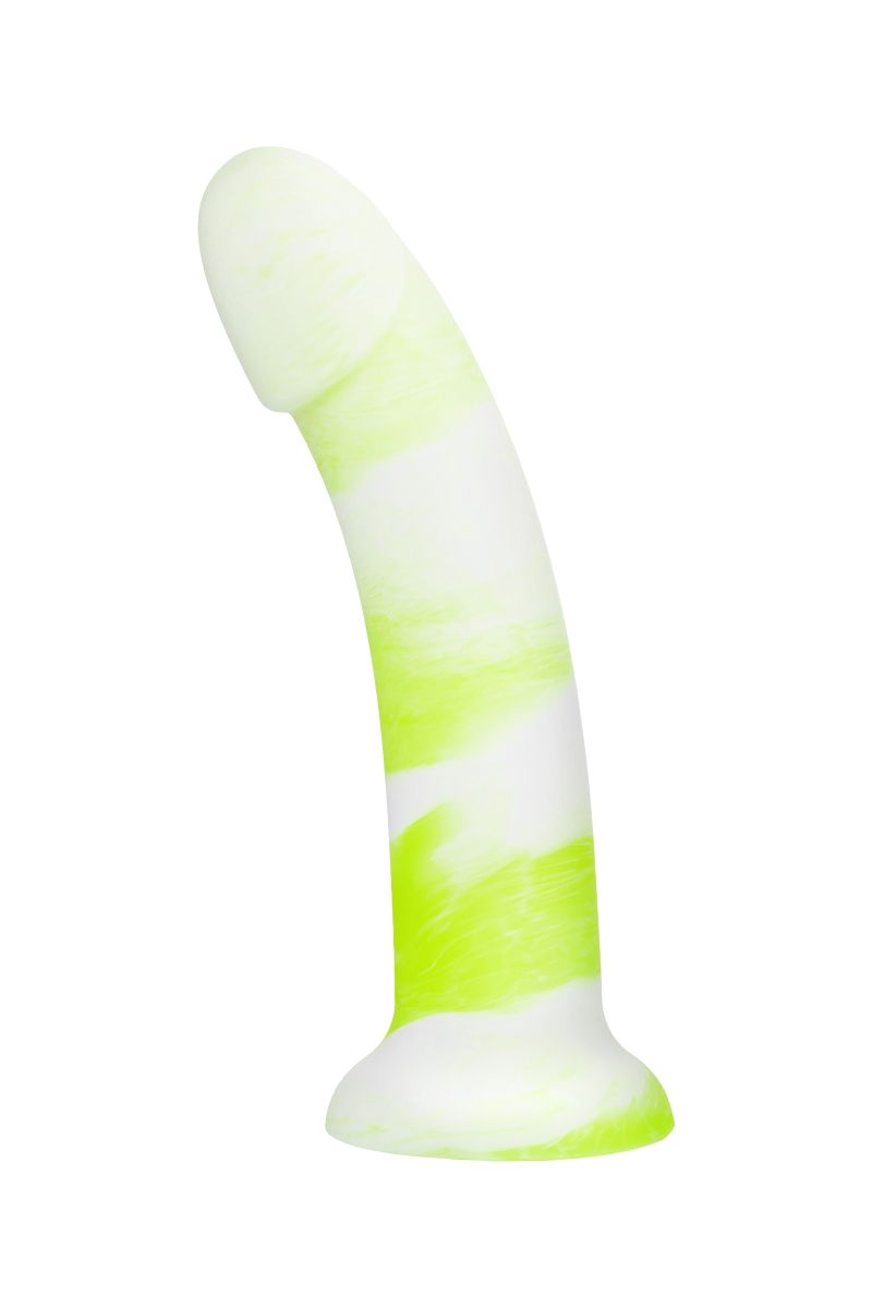Матовый силикон не имеет резкого запаха и отличается эластичностью, что делает использование комфортным даже при длительных сессиях. Изогнутая форма способствует дополнительной стимуляции, а яркий желтый оттенок с оригинальными разводами добавляет эстетики и настроения. Модель не оснащена вибрацией, что позволяет полностью контролировать ритм и интенсивность самостоятельно.